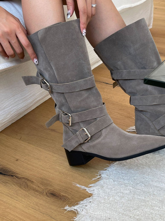 Suede Belted Western Boots