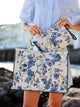 Meet The Fiorella Tote – A Chic Floral Masterpiece That Blends Sophistication With Effortless Charm. Adorned In Dreamy Blue Blooms On A Neutral Canvas, This Roomy Tote Is Your Go-To Companion For Beach Days, Market Runs, Or Casual Strolls Through Town.