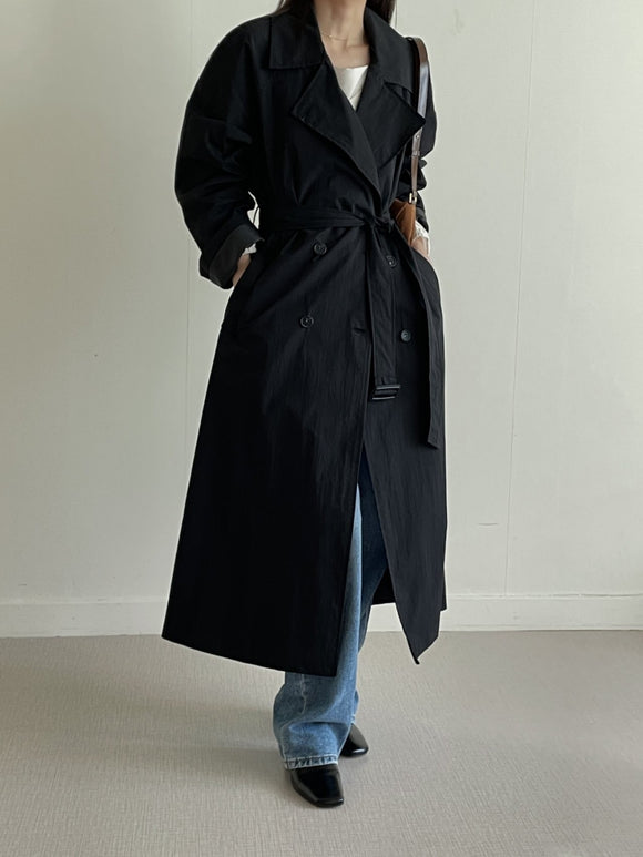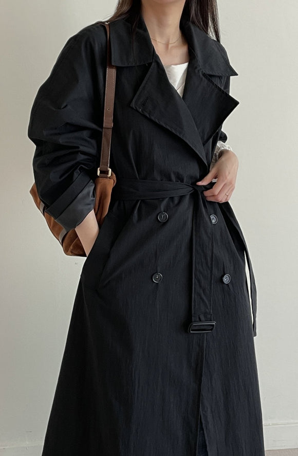 Oversized fit black trench coat