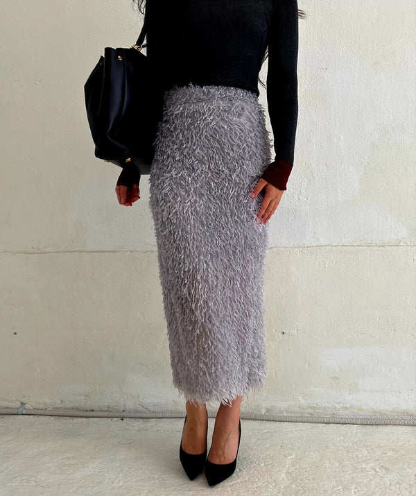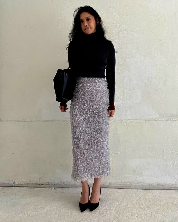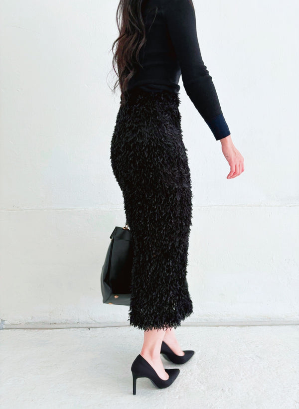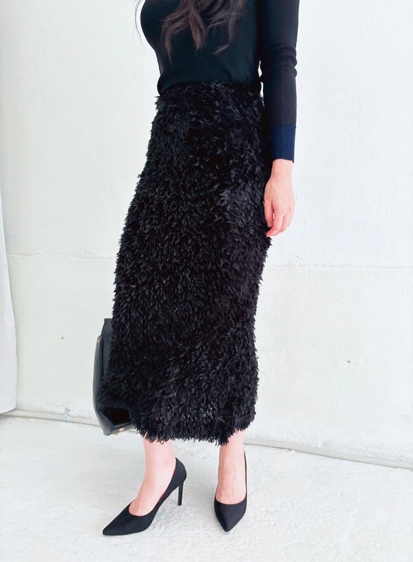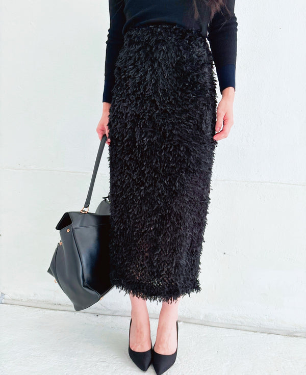 Feather Fringe Long Skirt - Black is backordered and will ship as soon as it is back in stock.