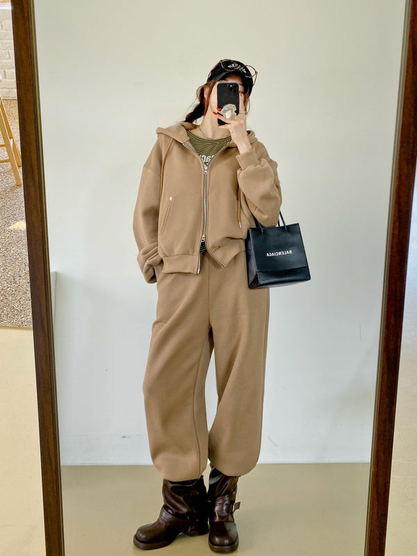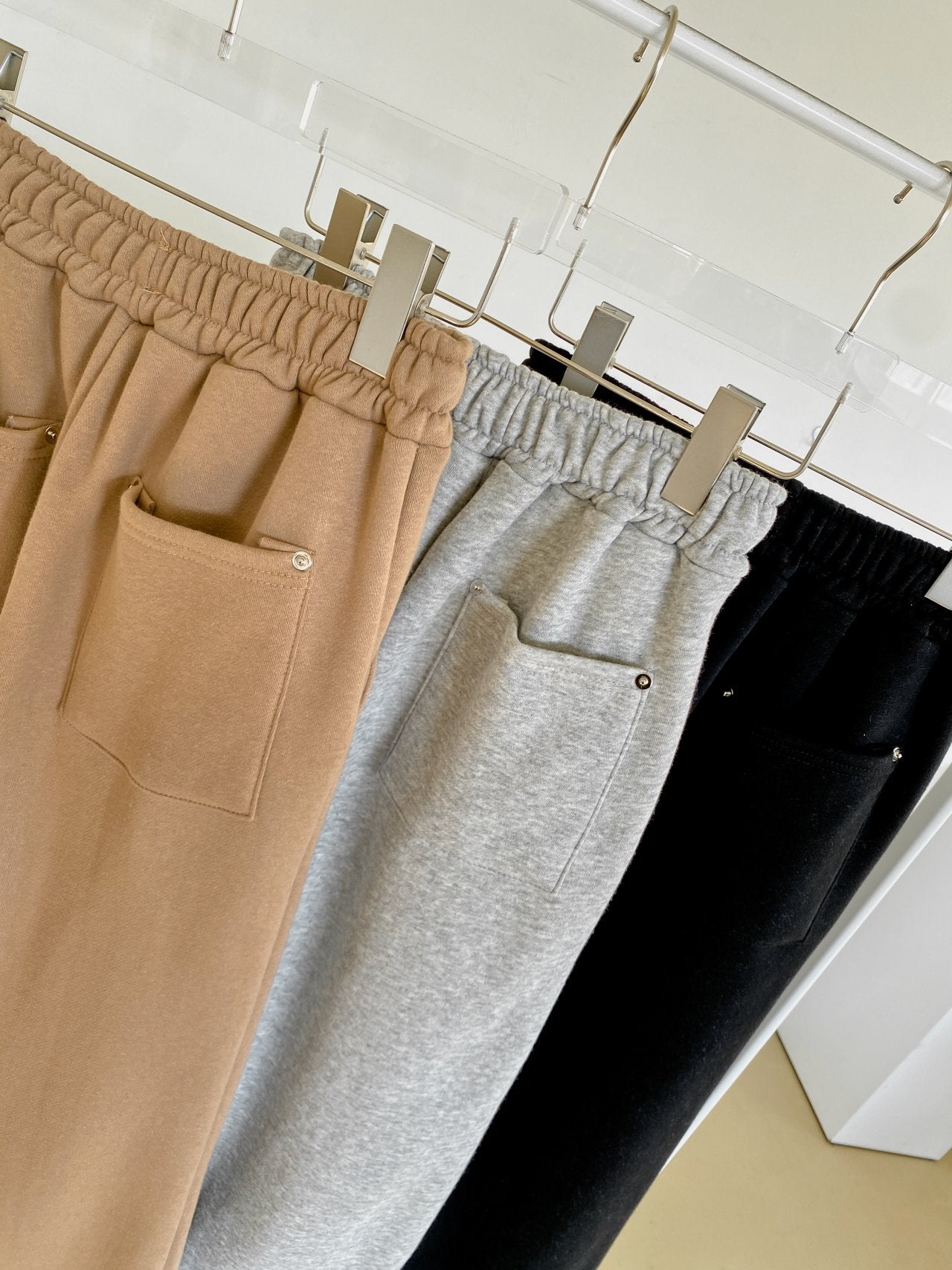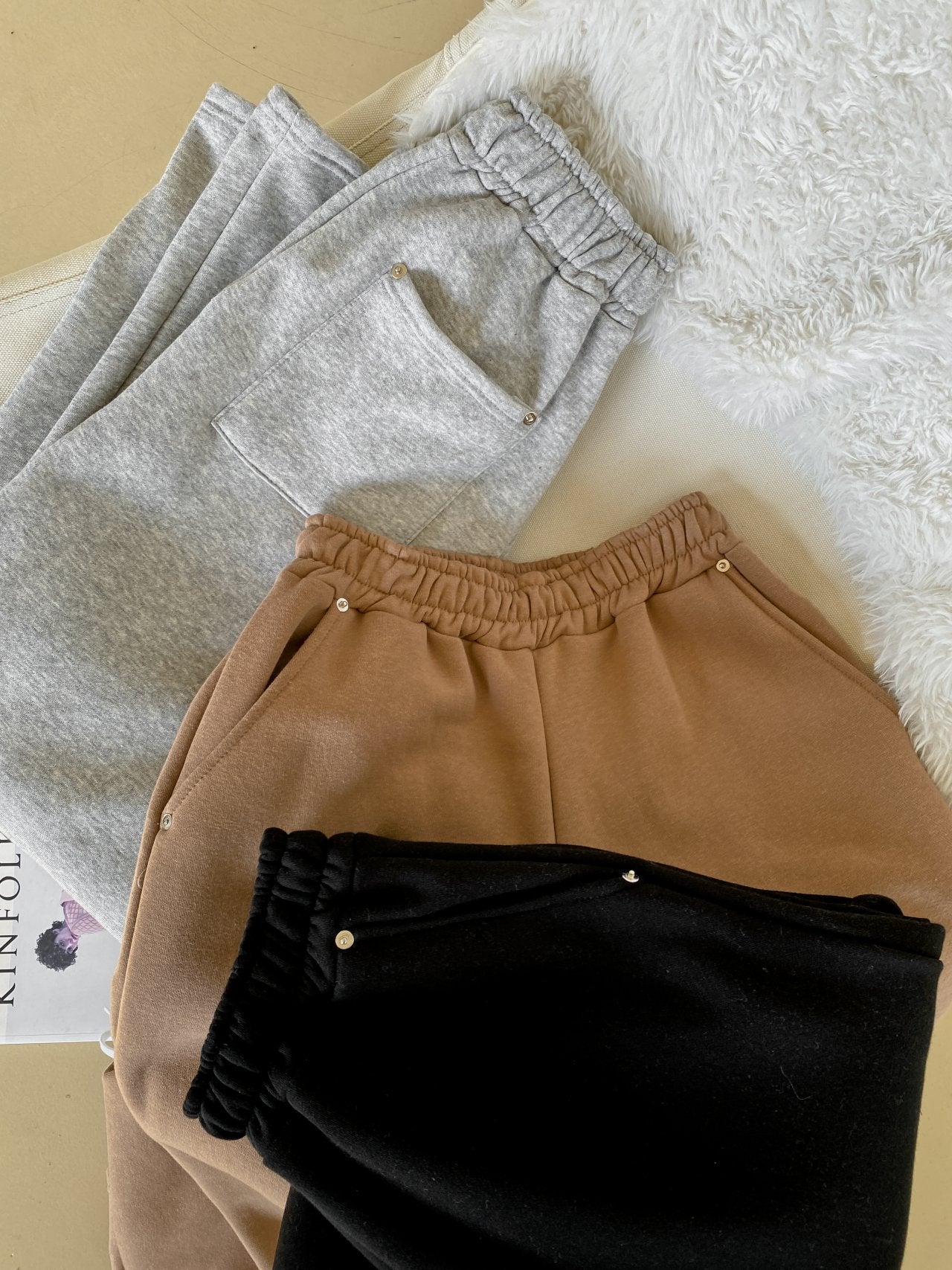 • Fleeced wide pants with rivet detail