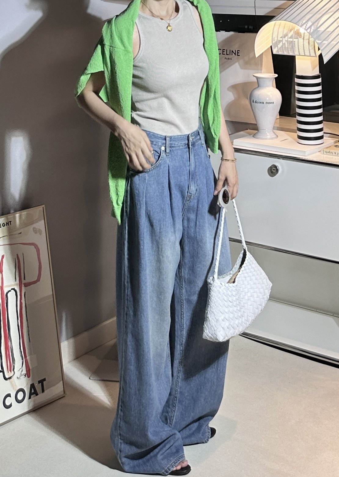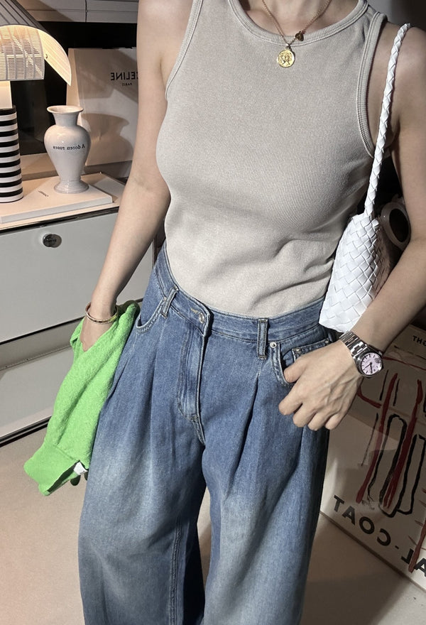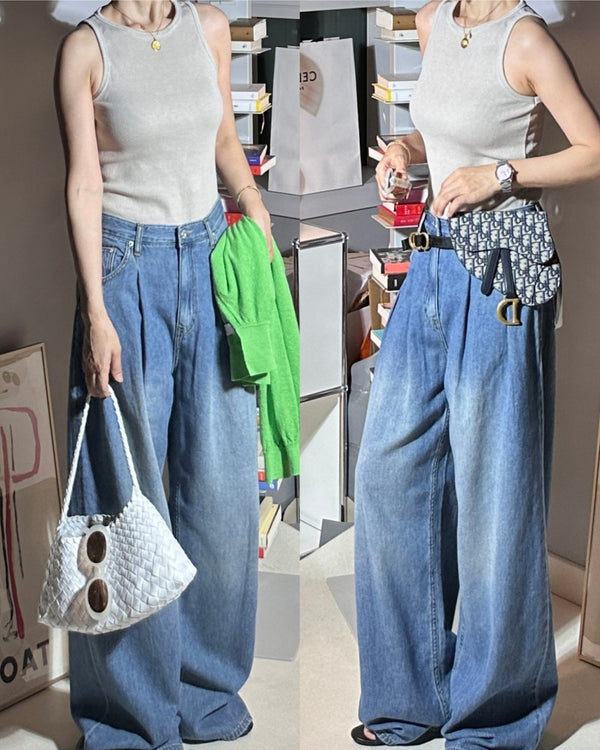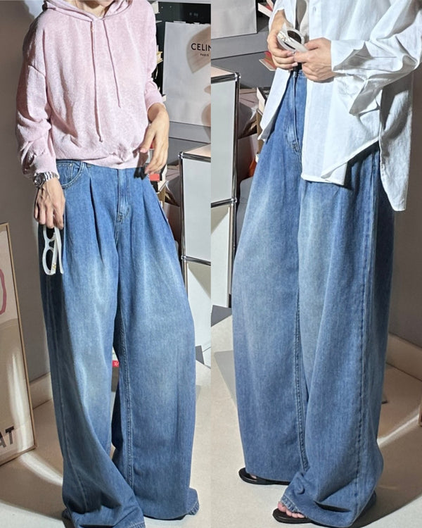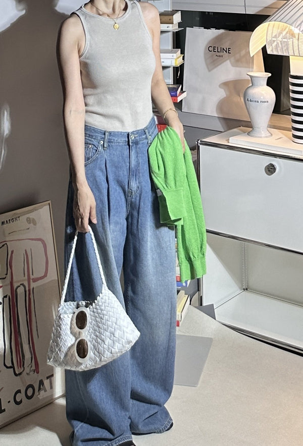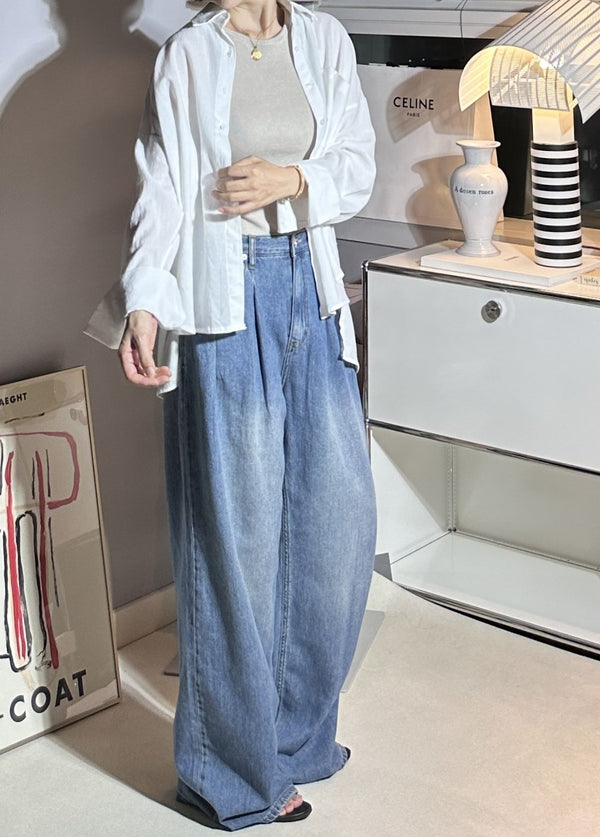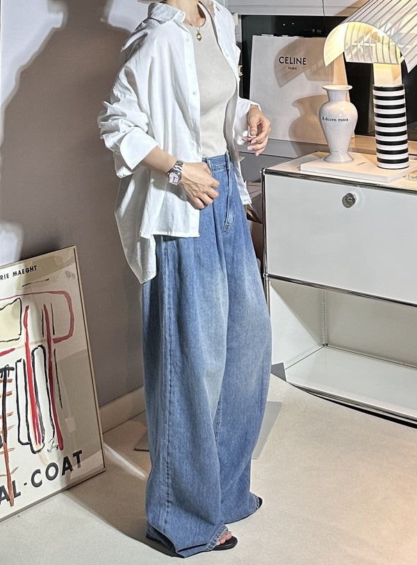 Pin-tuck Wide Denim Pants