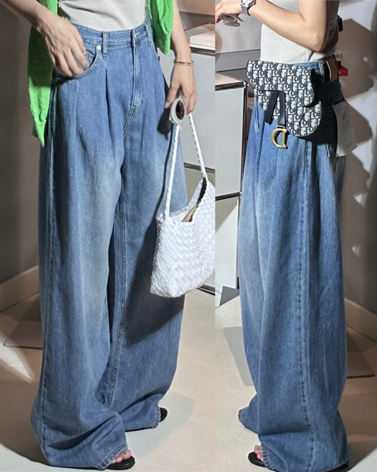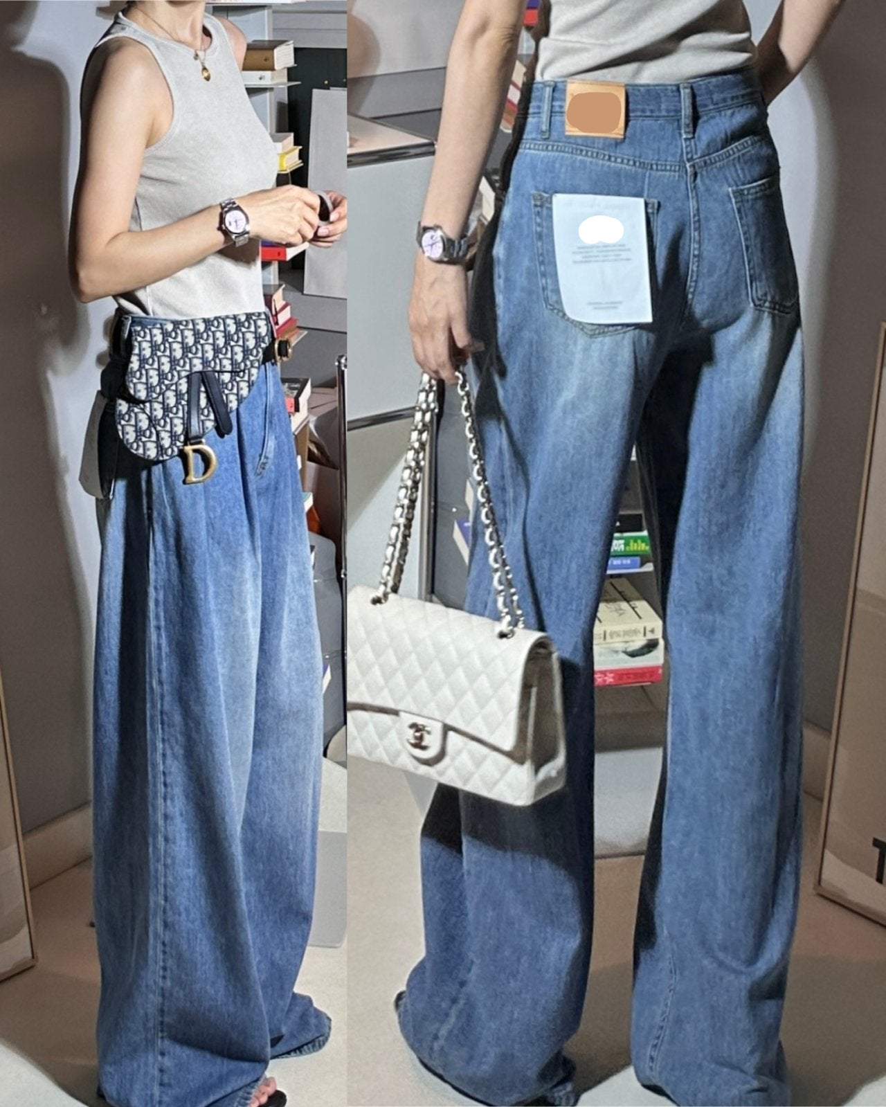 - Wide fit, fitted on hip