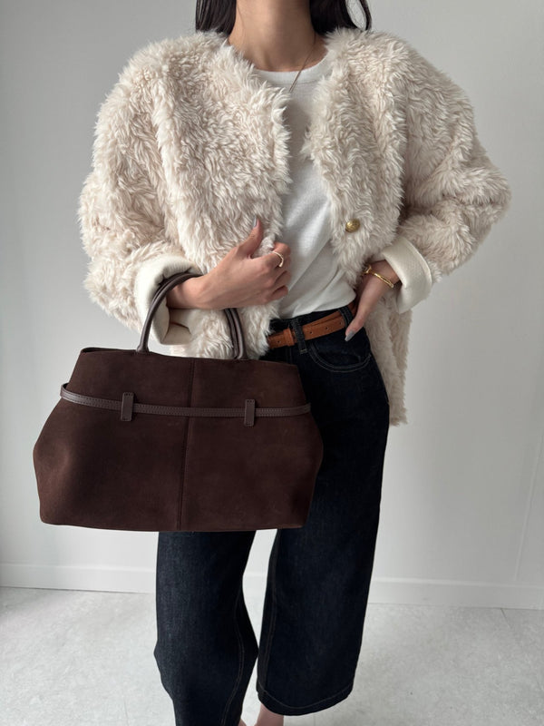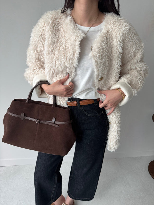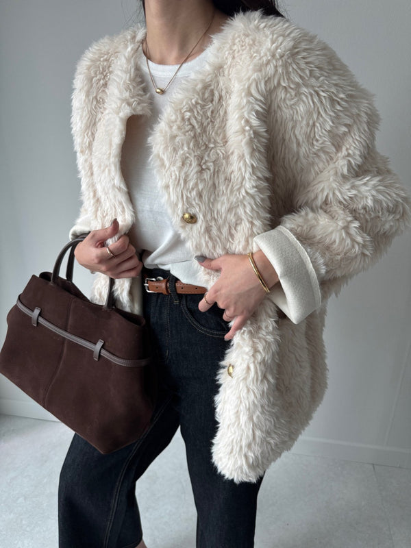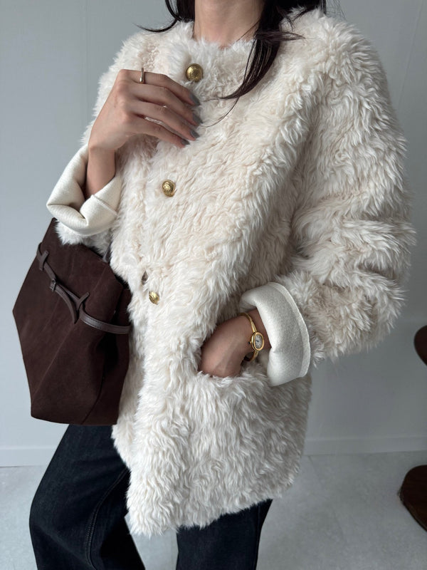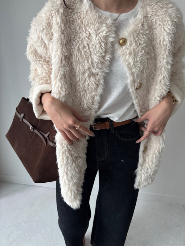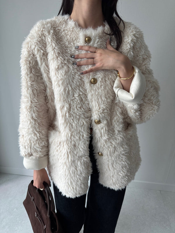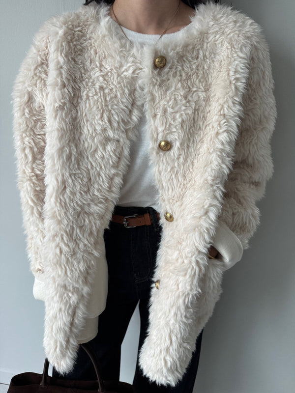 Gold Button Faux Fur Teddy Jacket