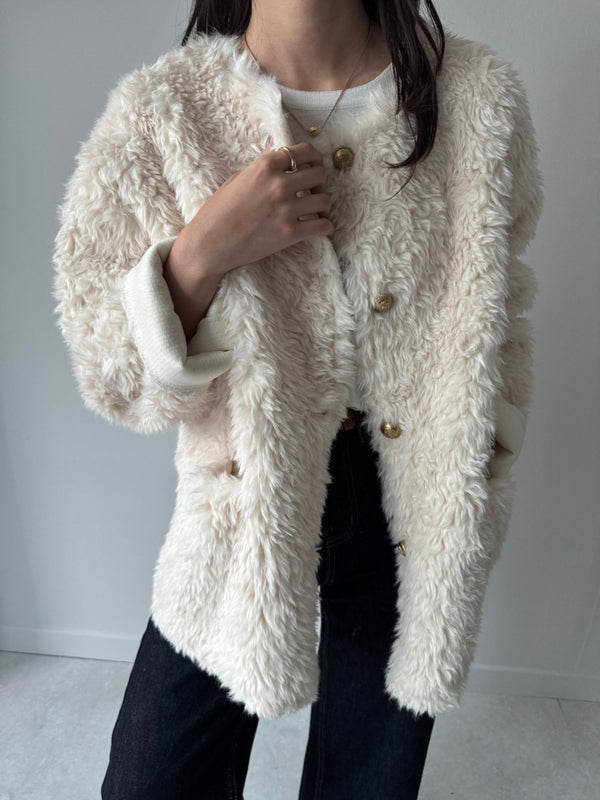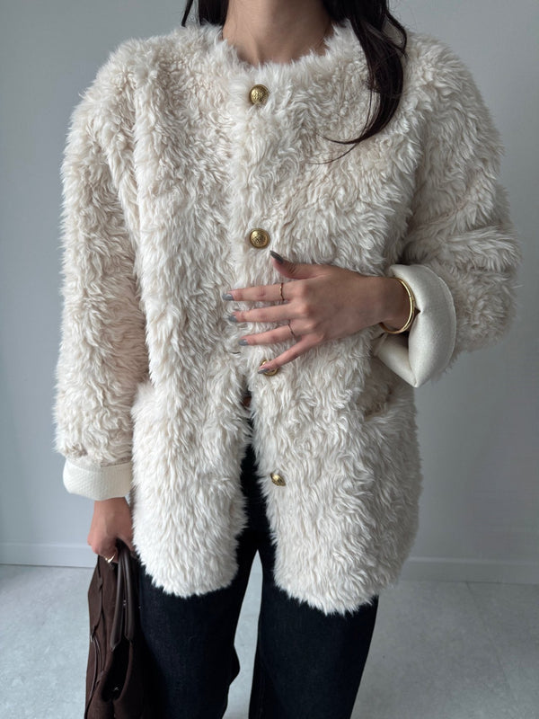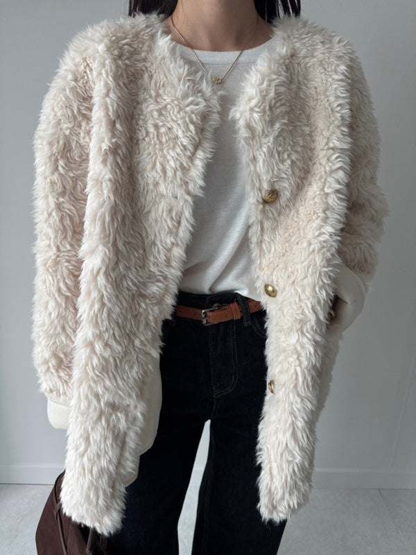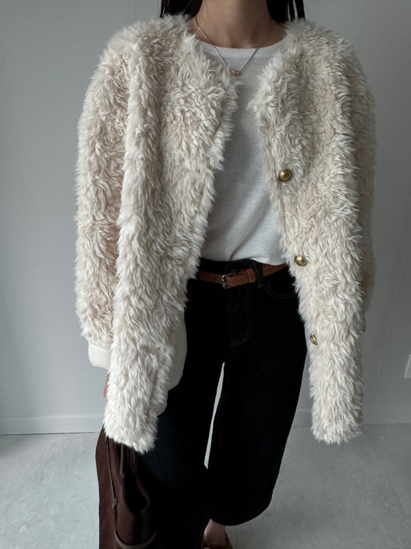 - Faux Fur Jacket with Gold Buttons