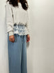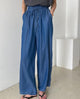 Wide fit pleated pants in elastic banded waist, bow details on the side