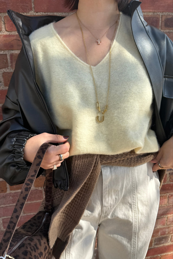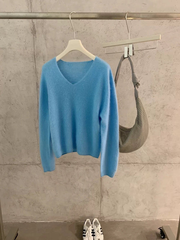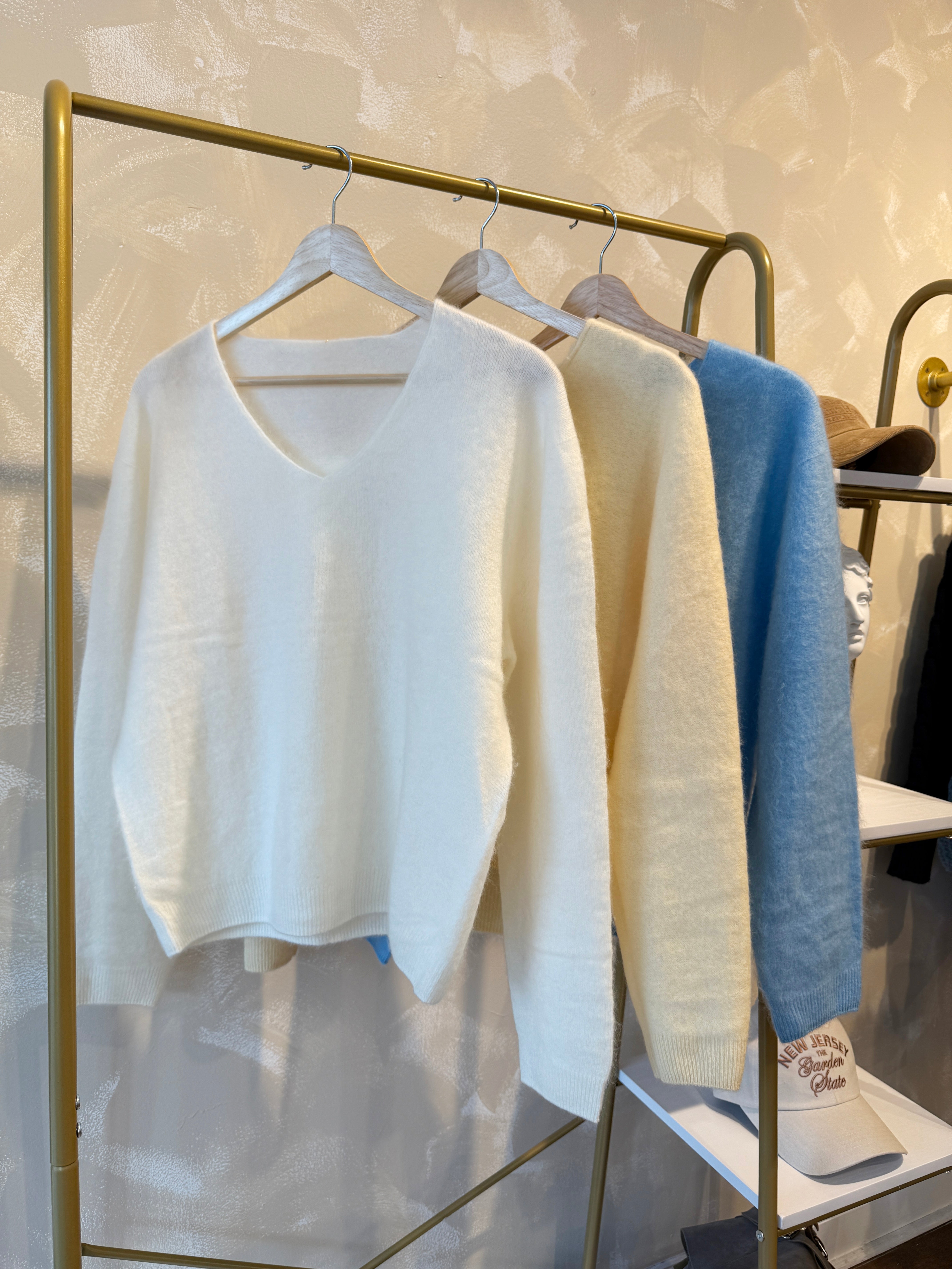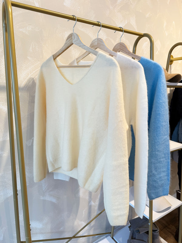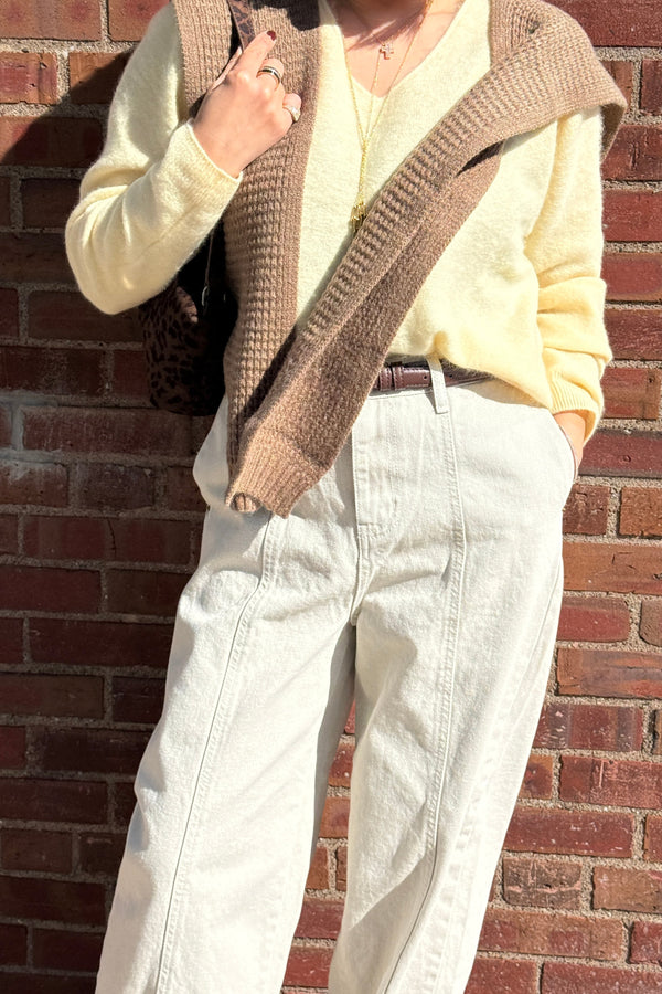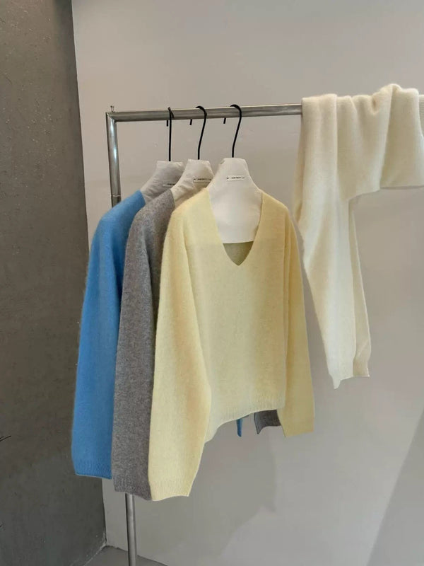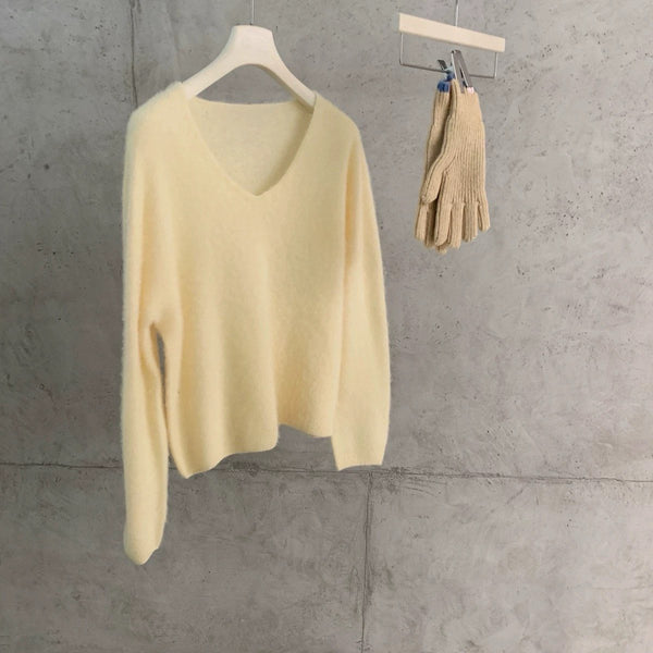 Mohair V-neck Knit - Butter Yellow is backordered and will ship as soon as it is back in stock.