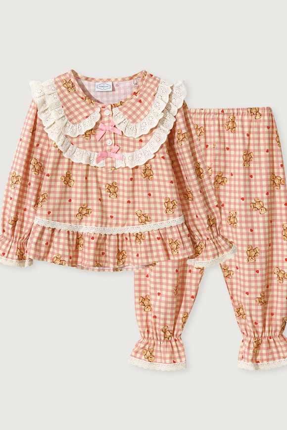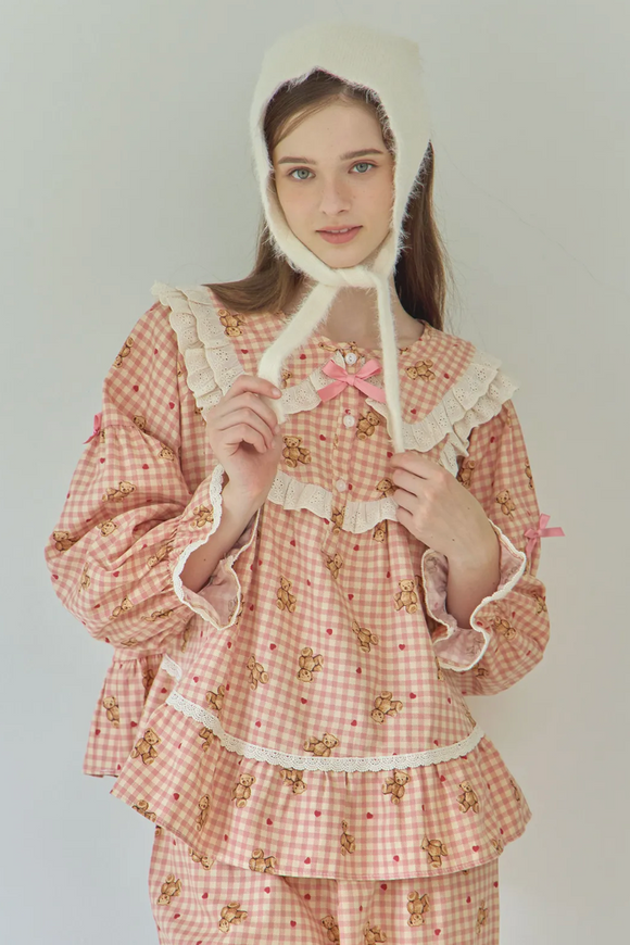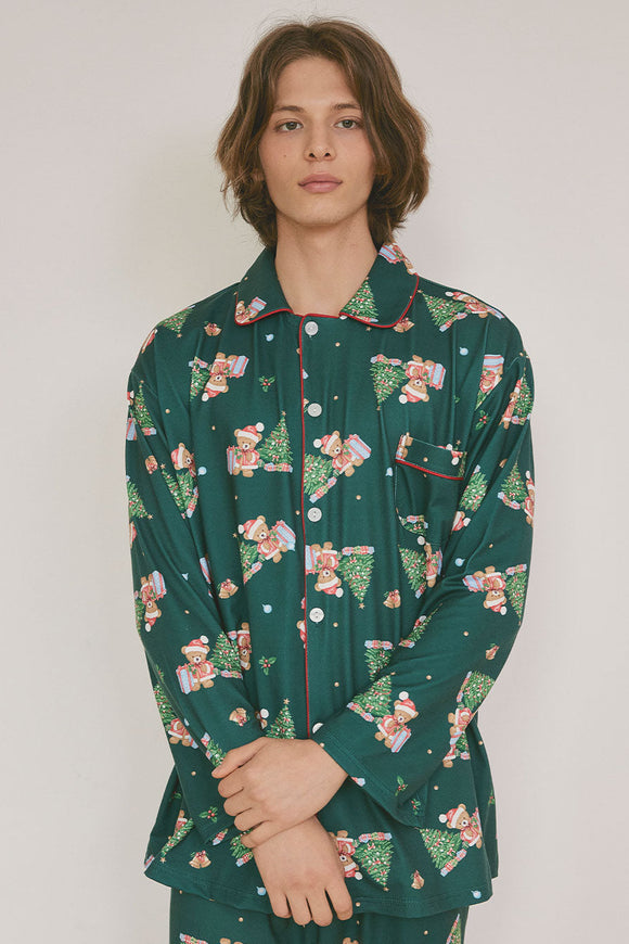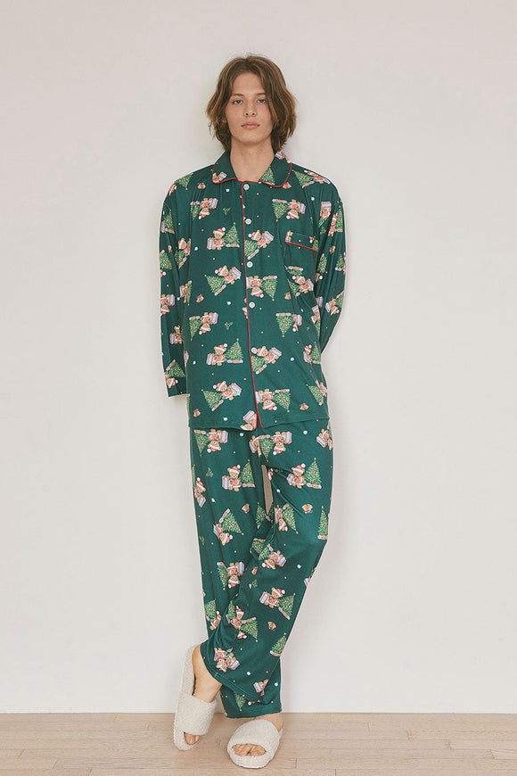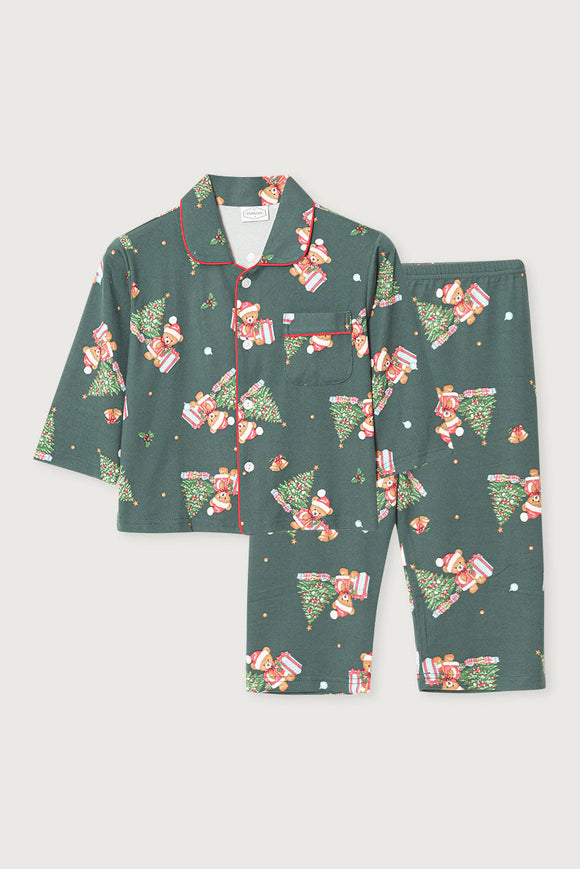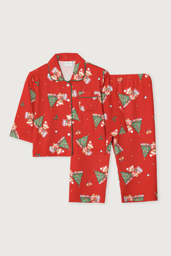 Christmas Bear Stretch Round Neck Long Sleeve PJ Set