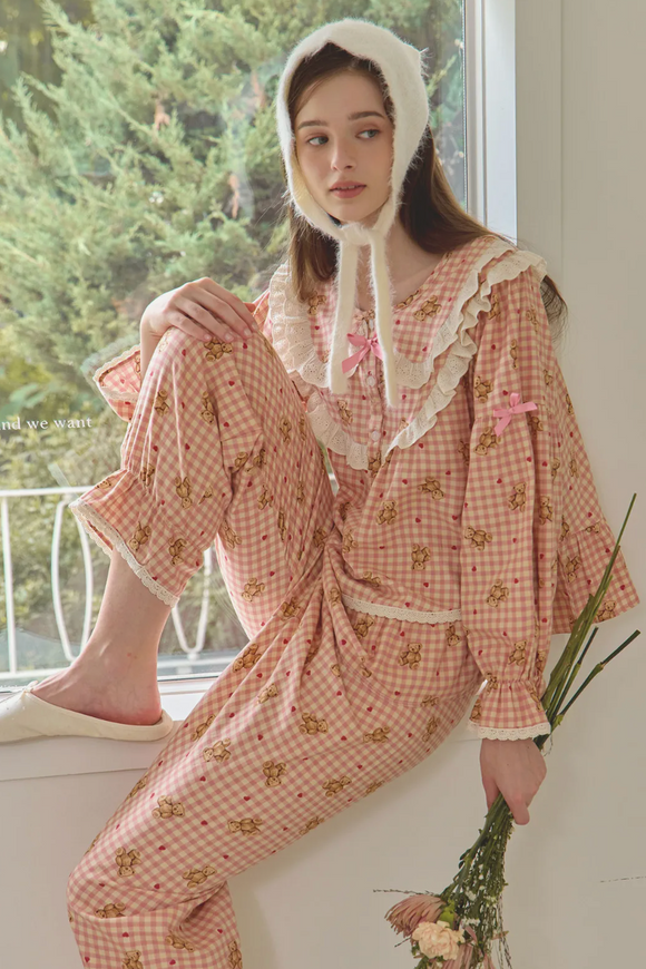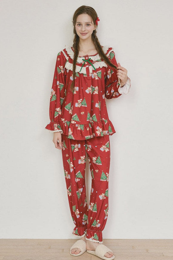 Christmas Bear Stretch Round Neck Two-Piece PJ Set
