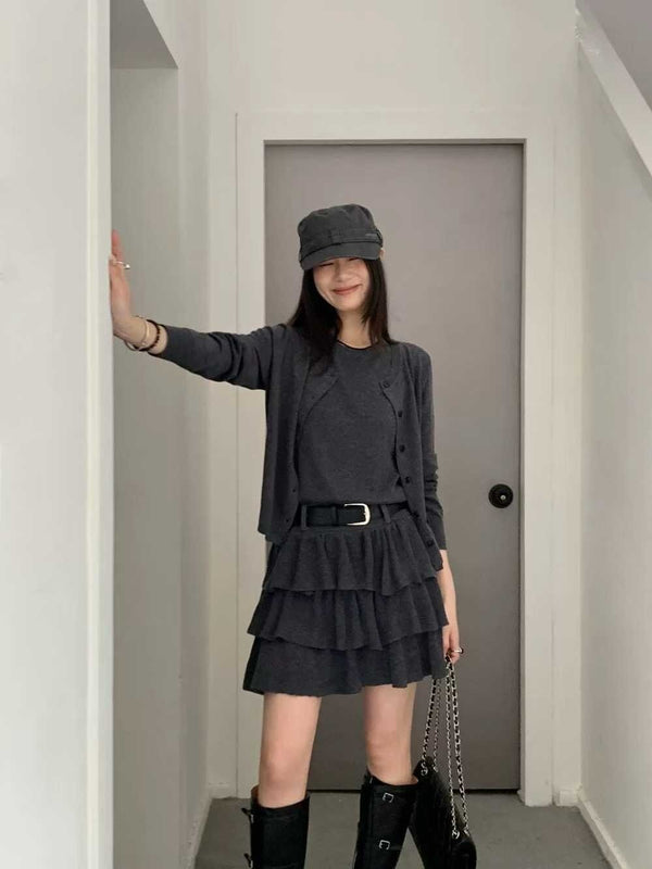 • 3pcs set item (Dress+ Belt+ Cardigan)