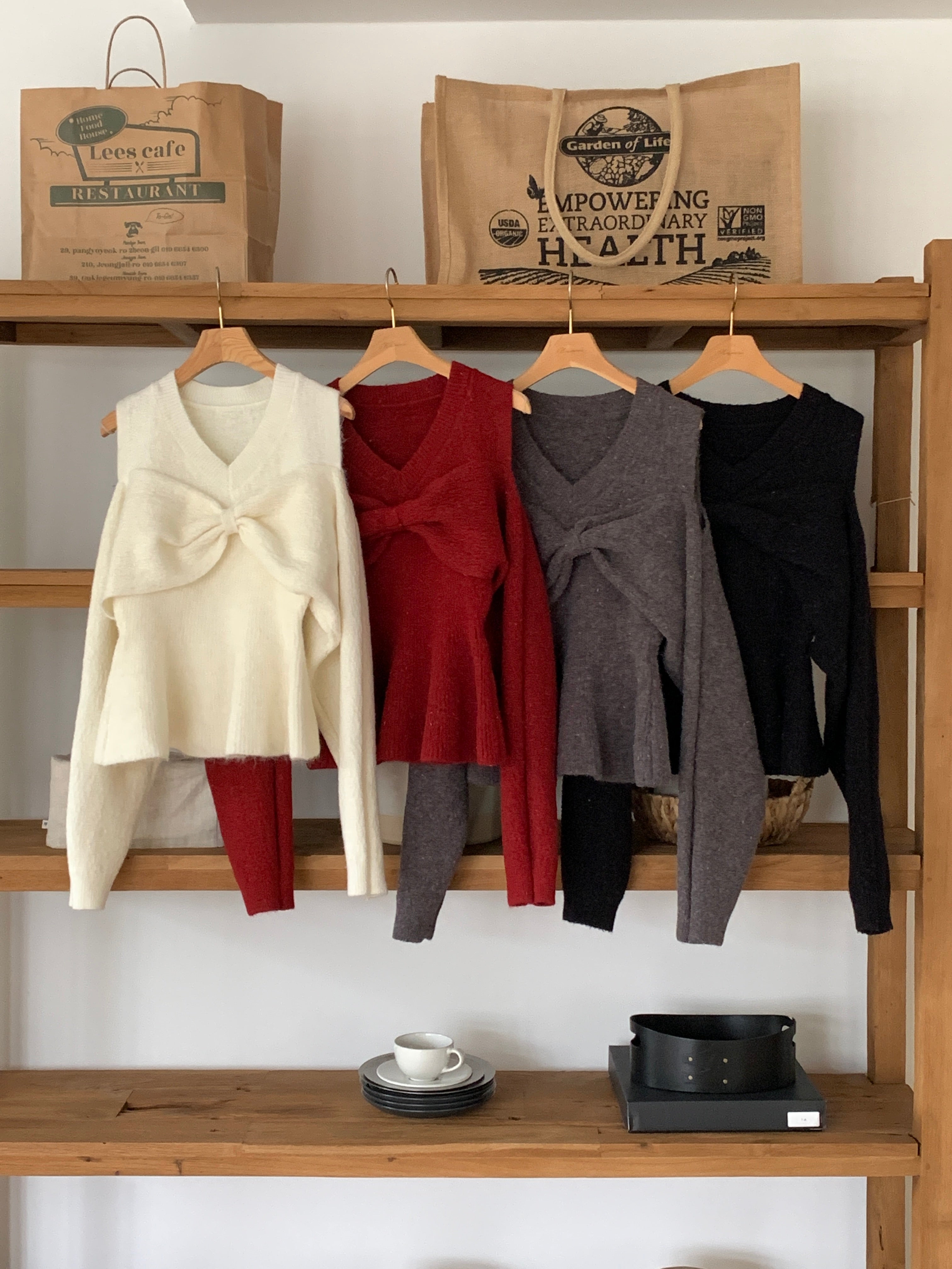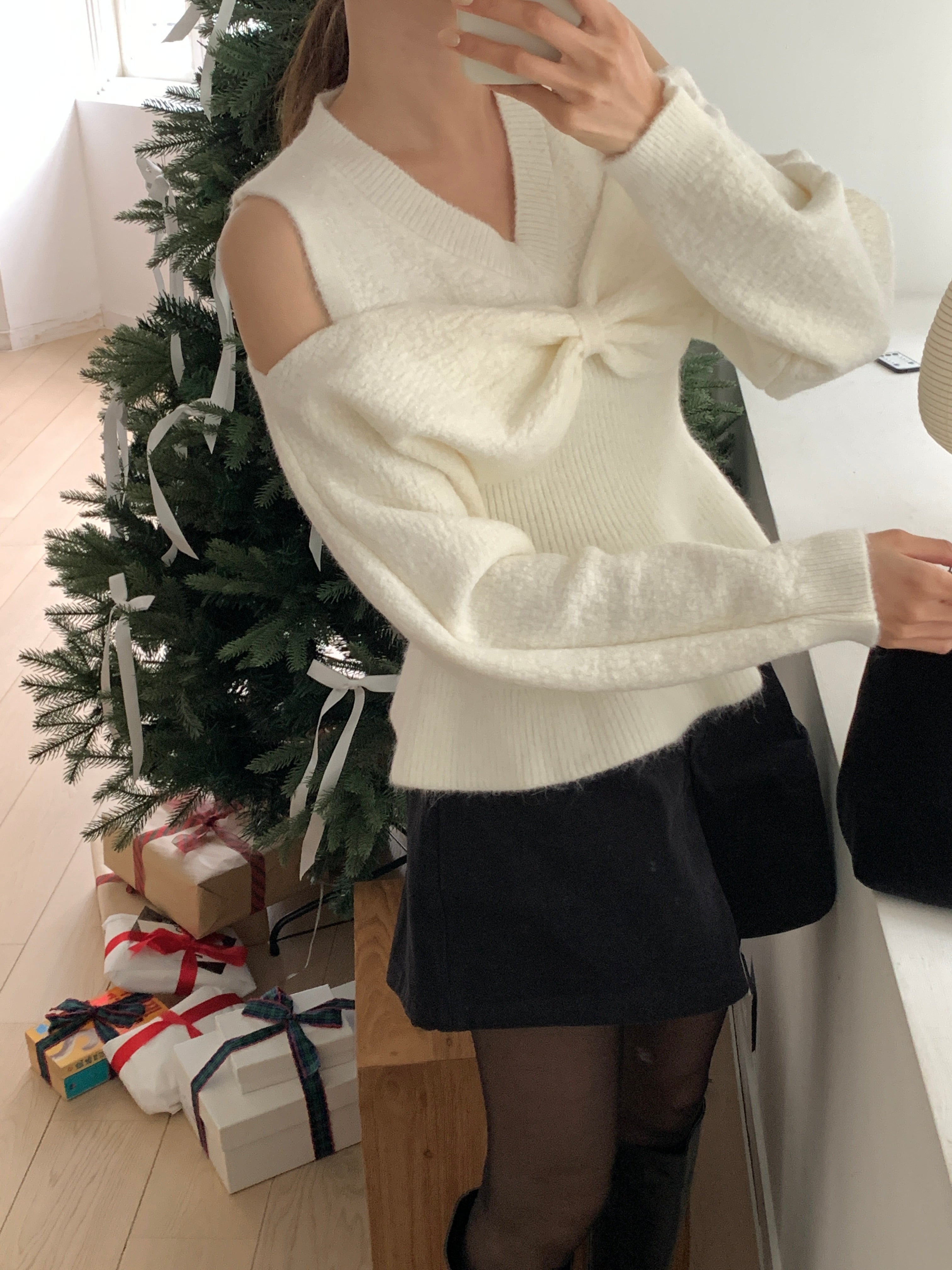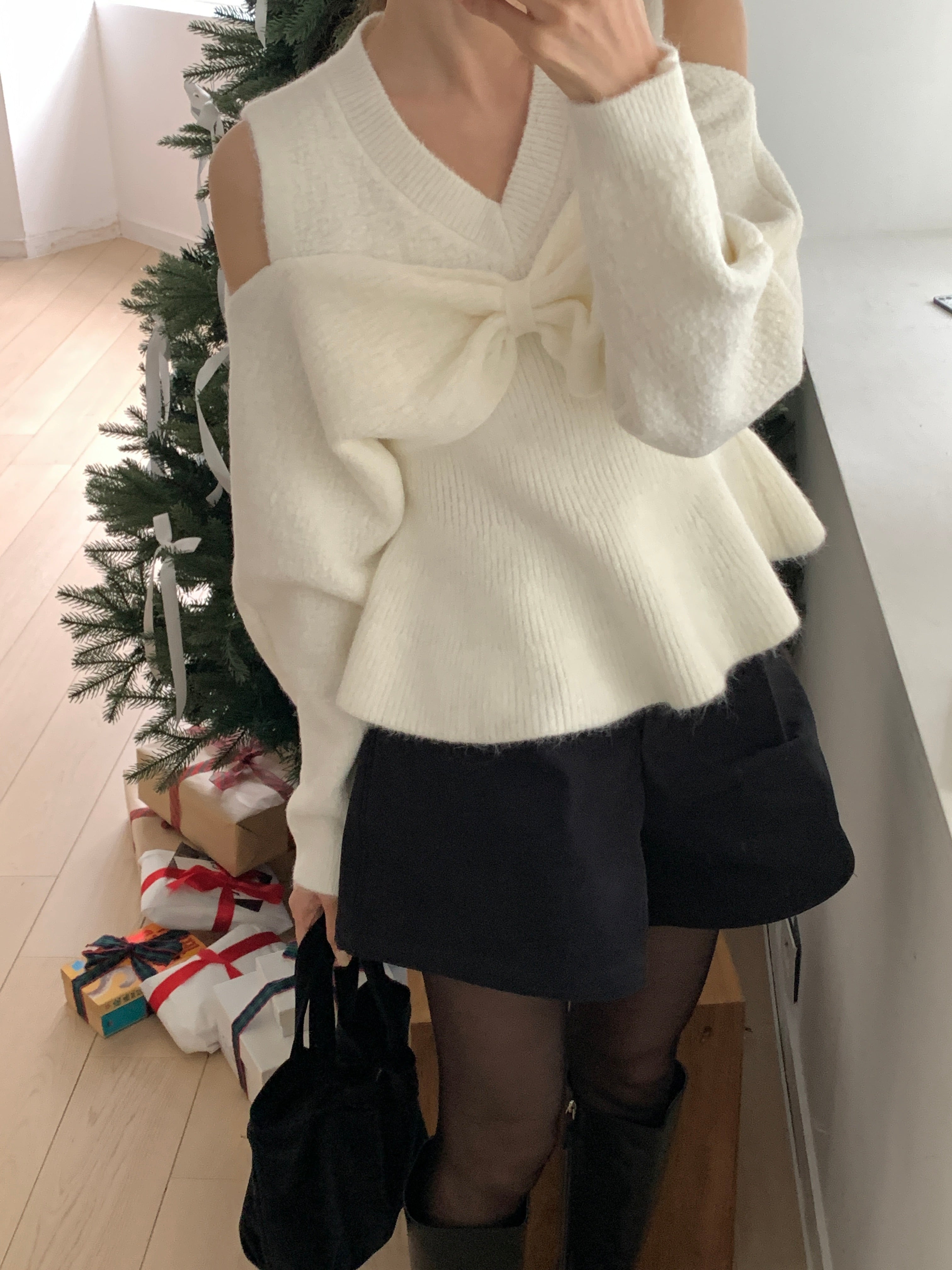 Bow Open Shoulder Peplum Sweater - Grey is backordered and will ship as soon as it is back in stock.