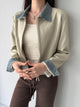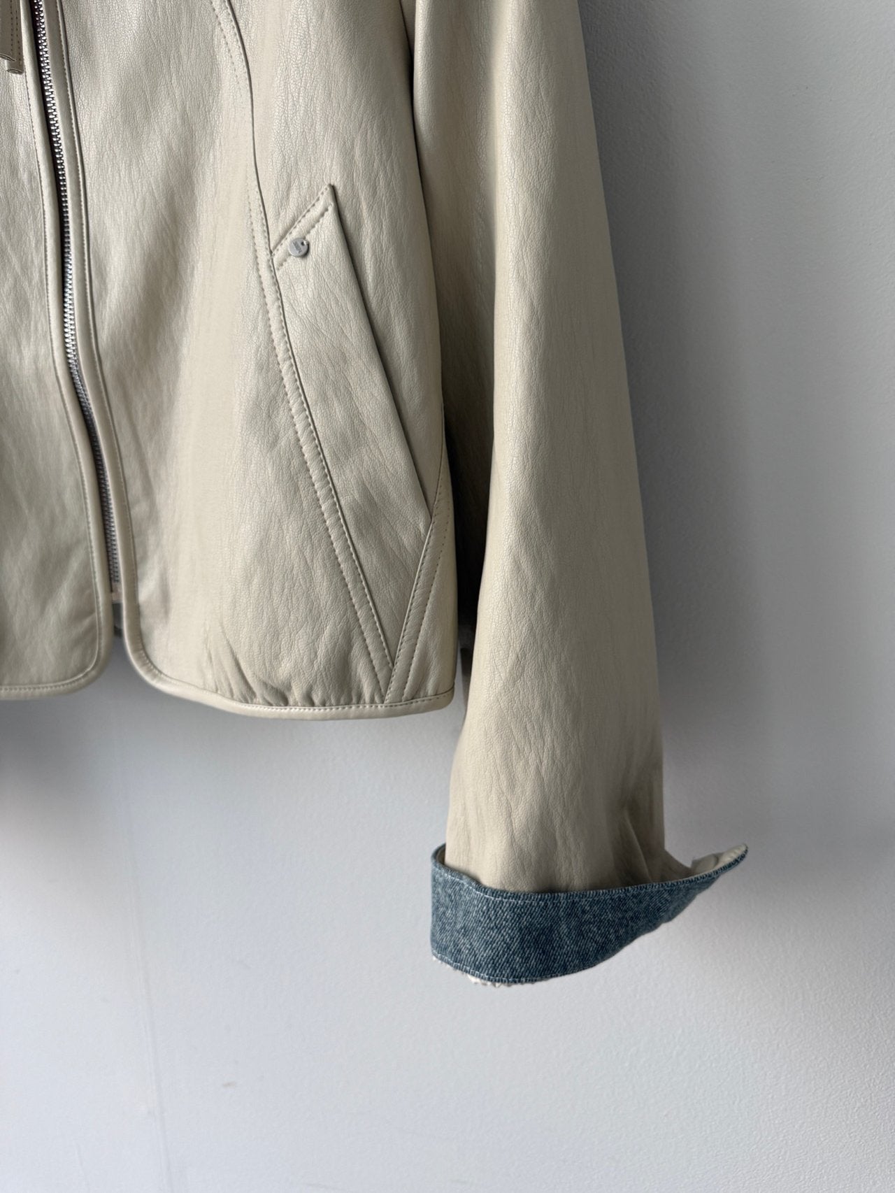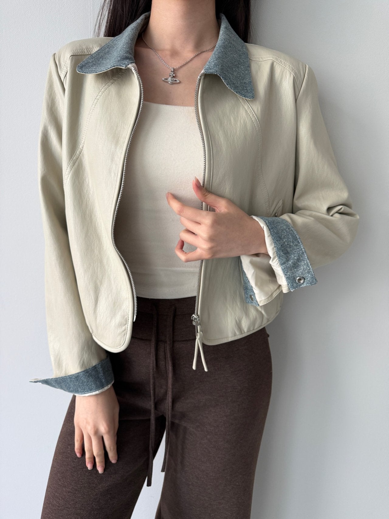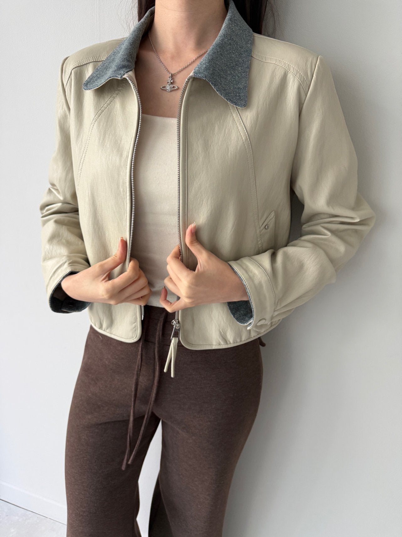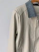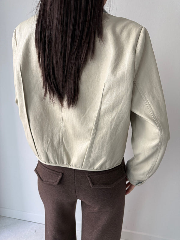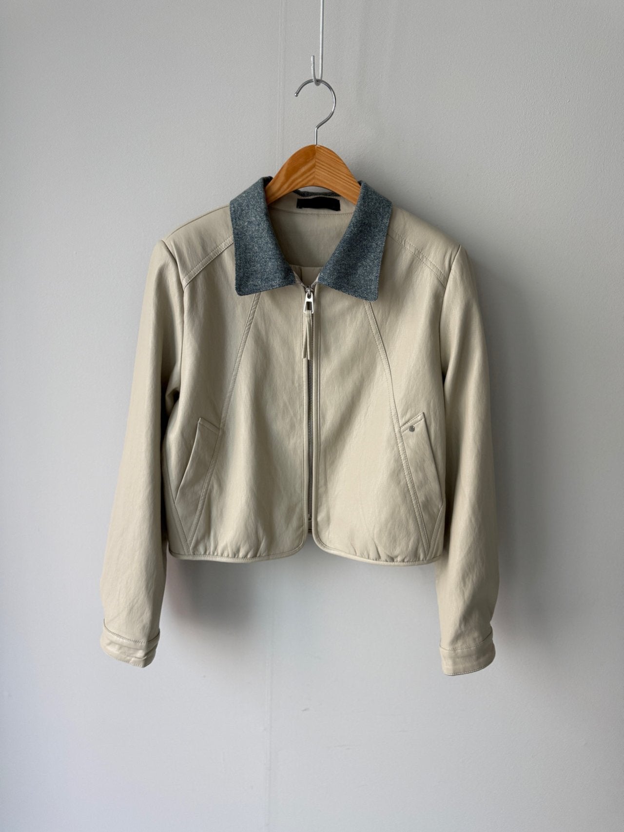 Chambray Collared Cropped Leather Jacket