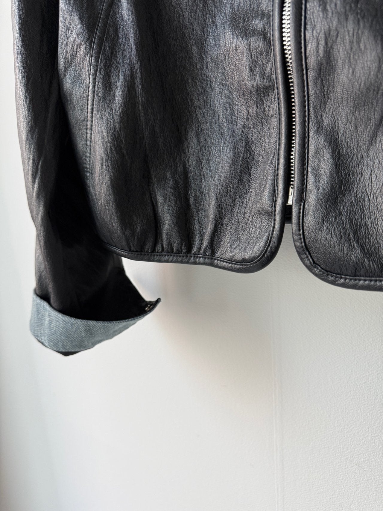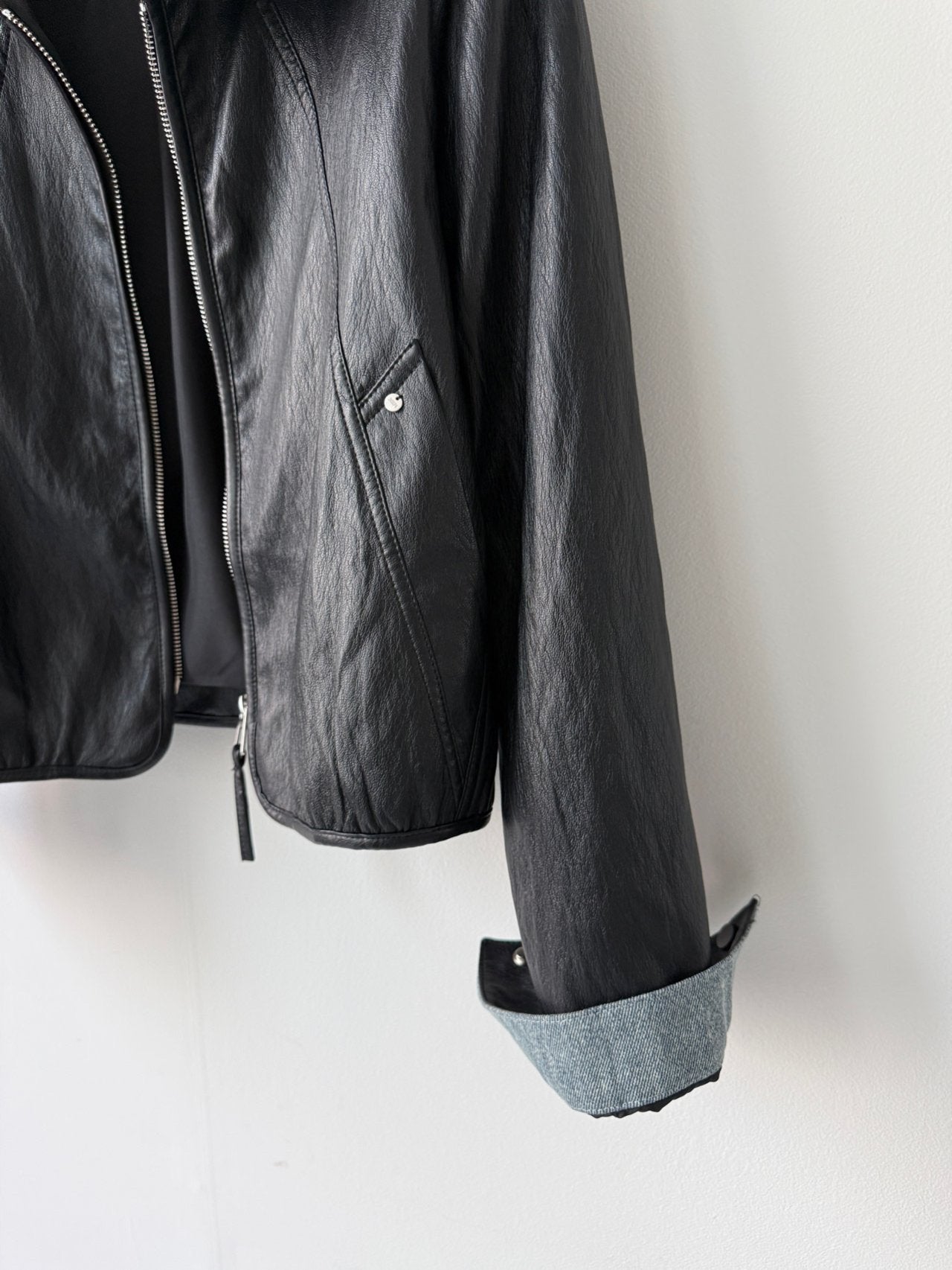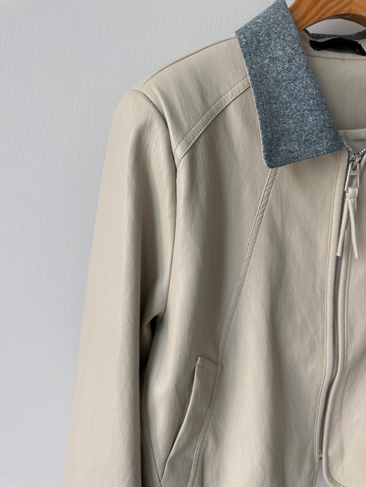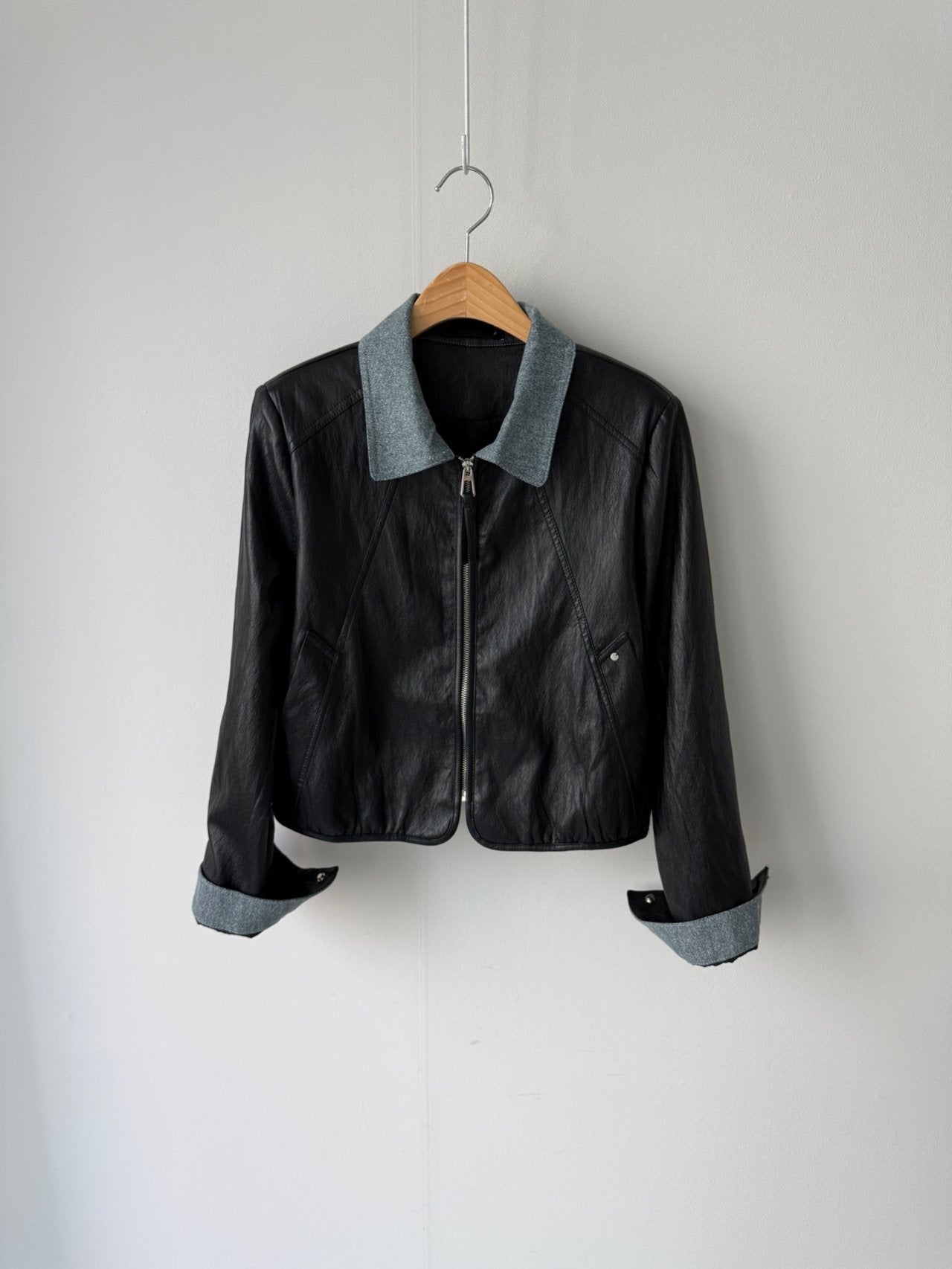 - simple , chambray collared vegan leather jacket