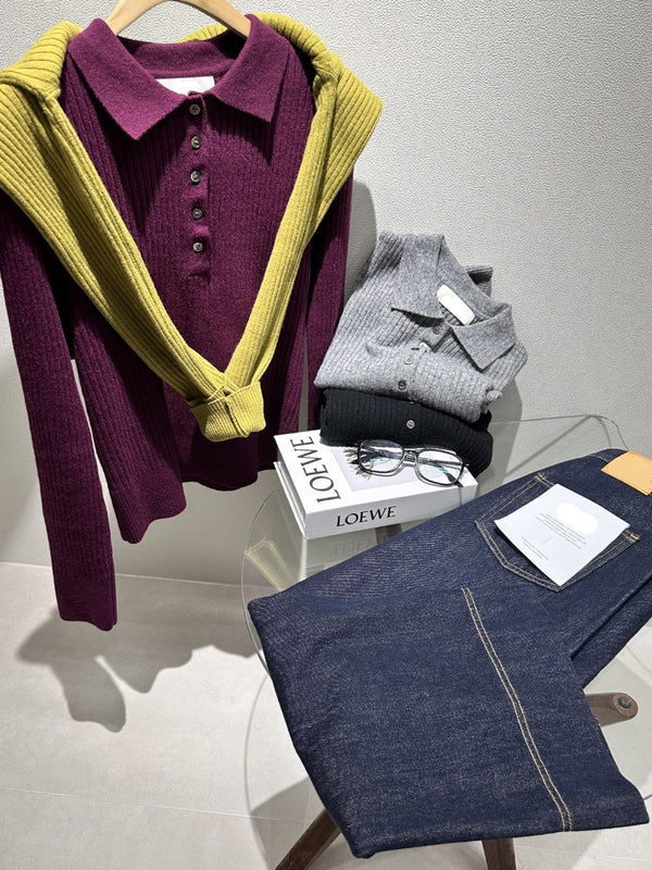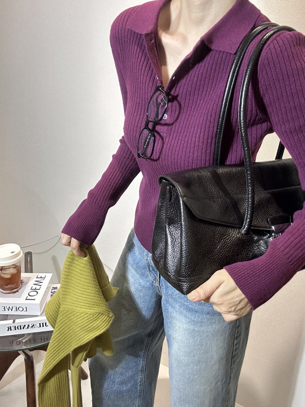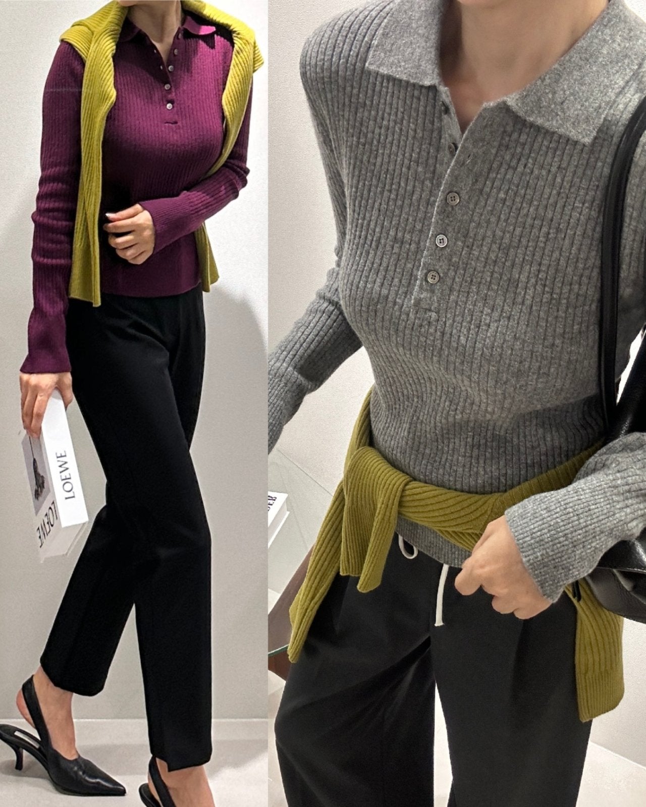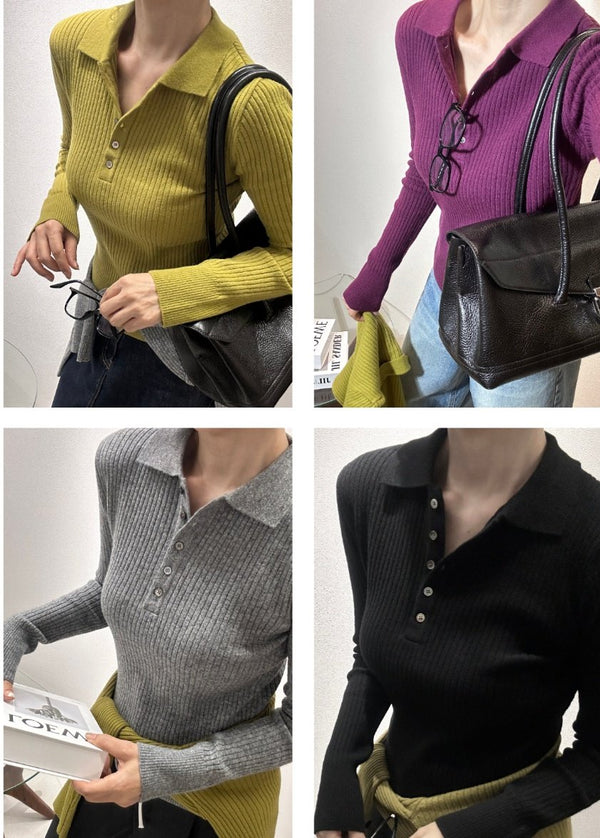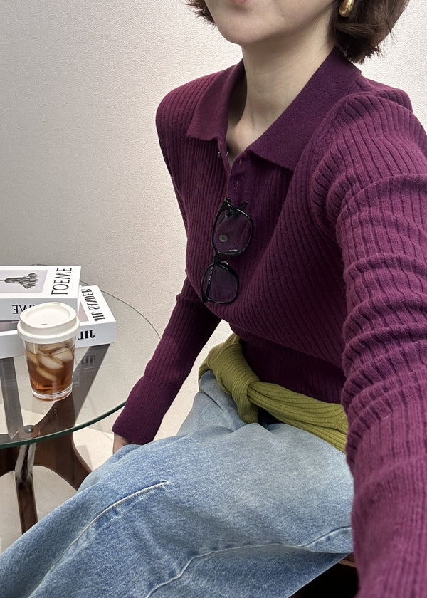 Color Ribbed Collar Top - Plum is backordered and will ship as soon as it is back in stock.