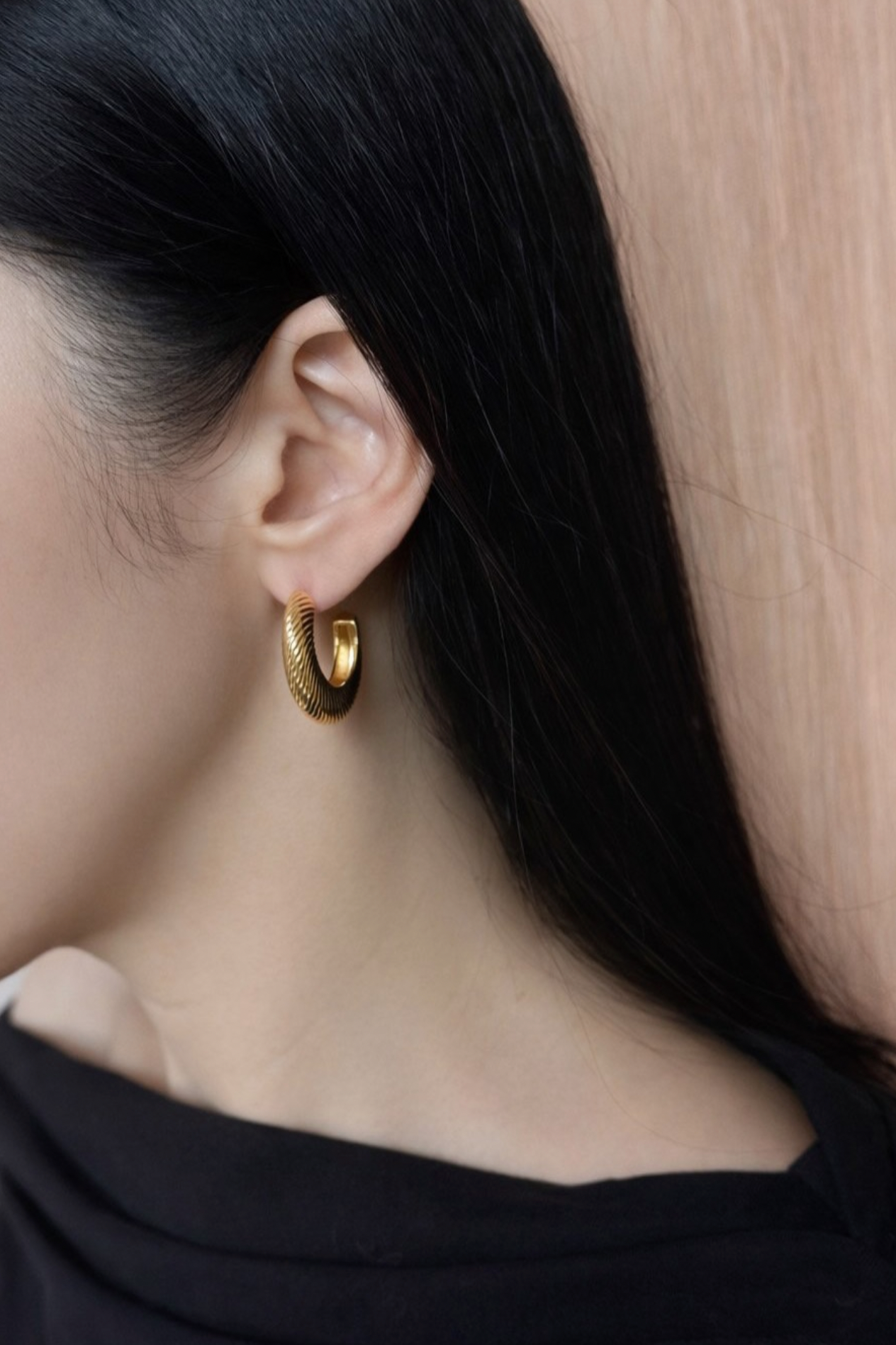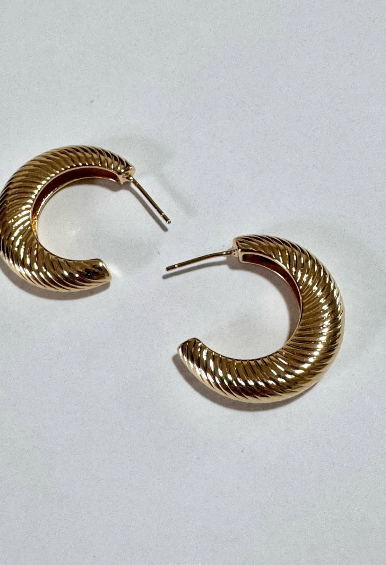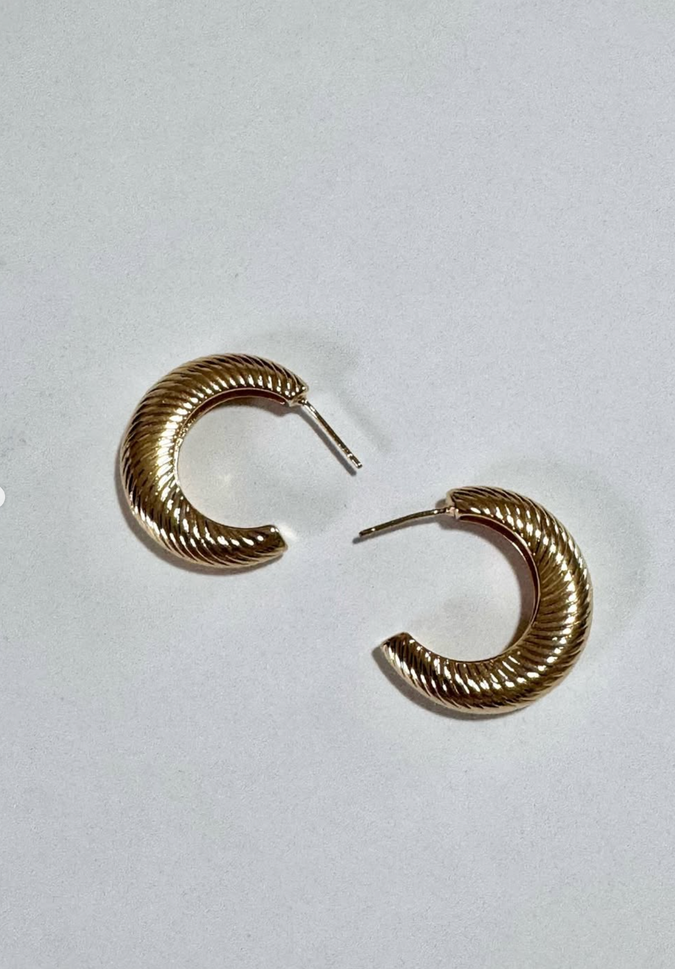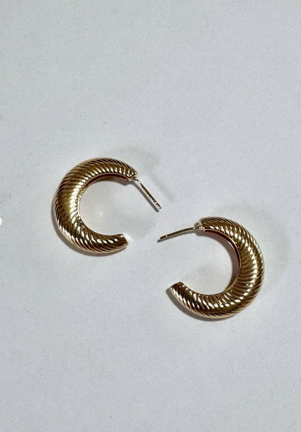 Short hoop earring with diagonal engraved pattern