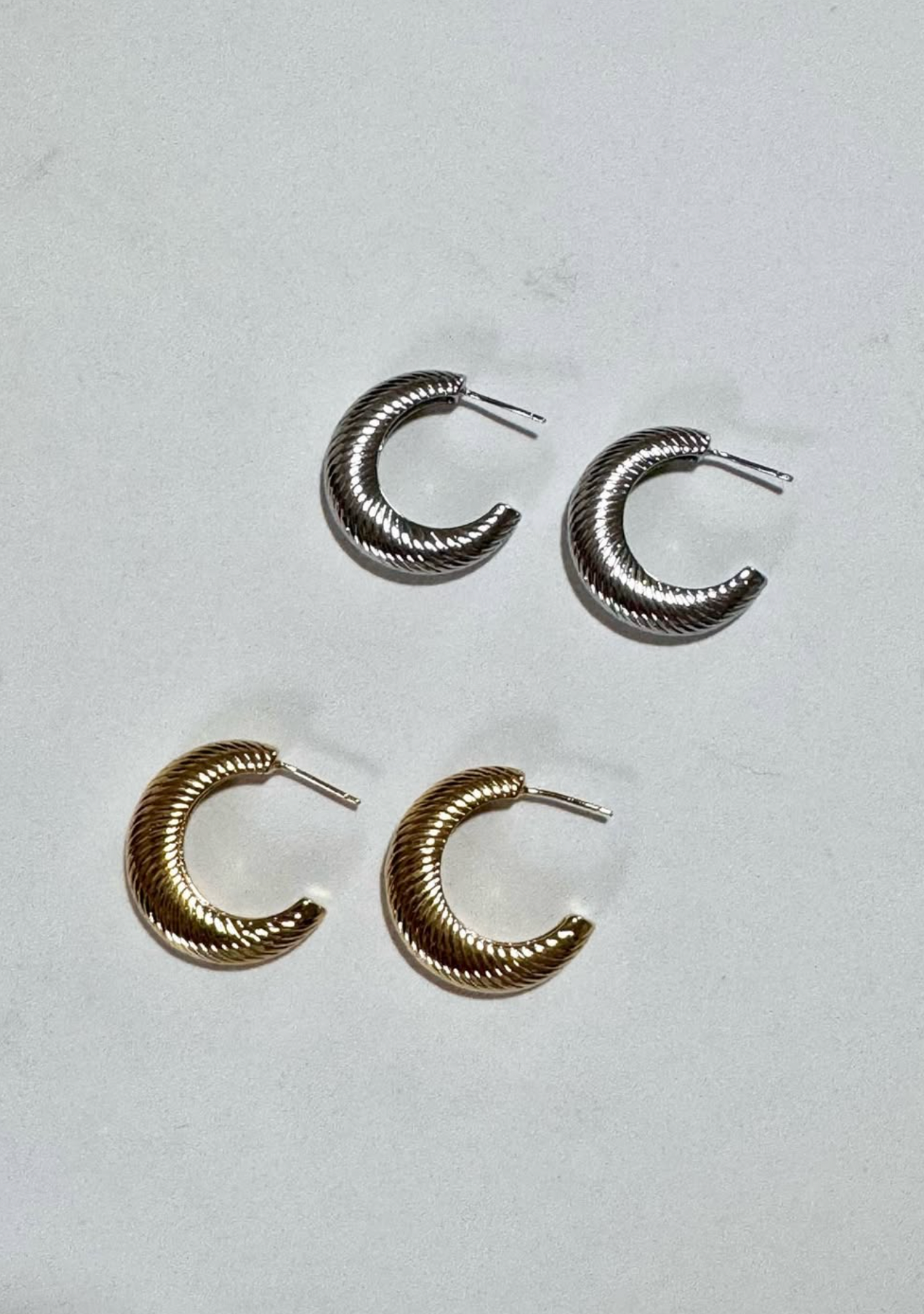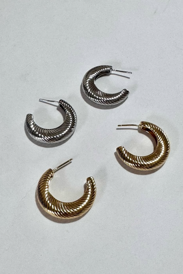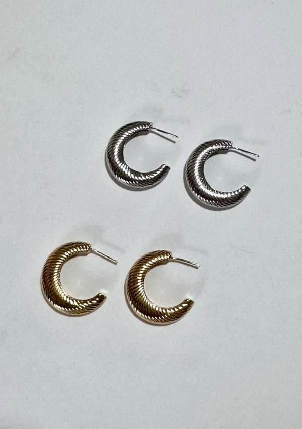 Skip to contentShort hoop earring with diagonal engraved pattern