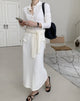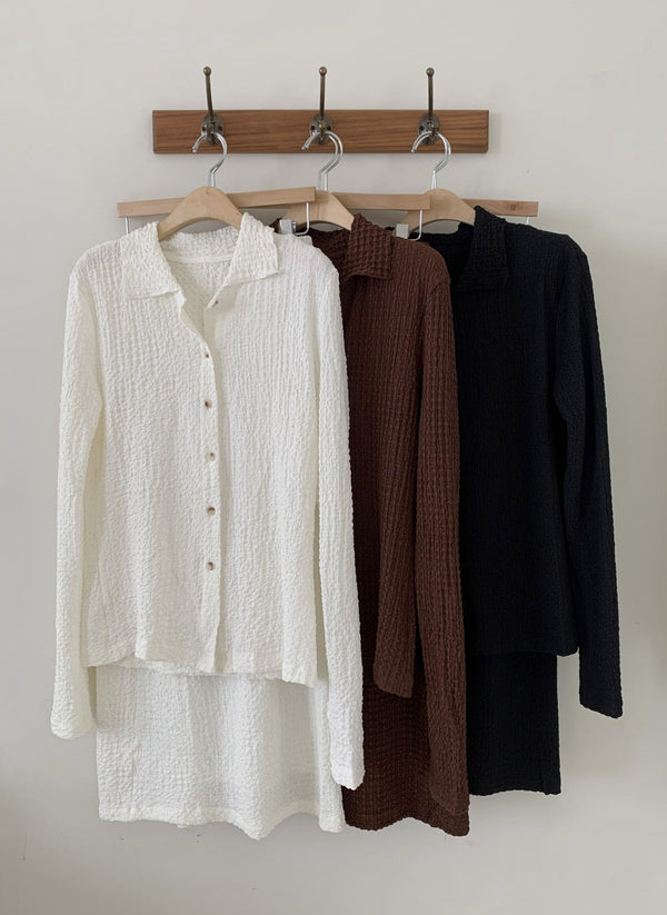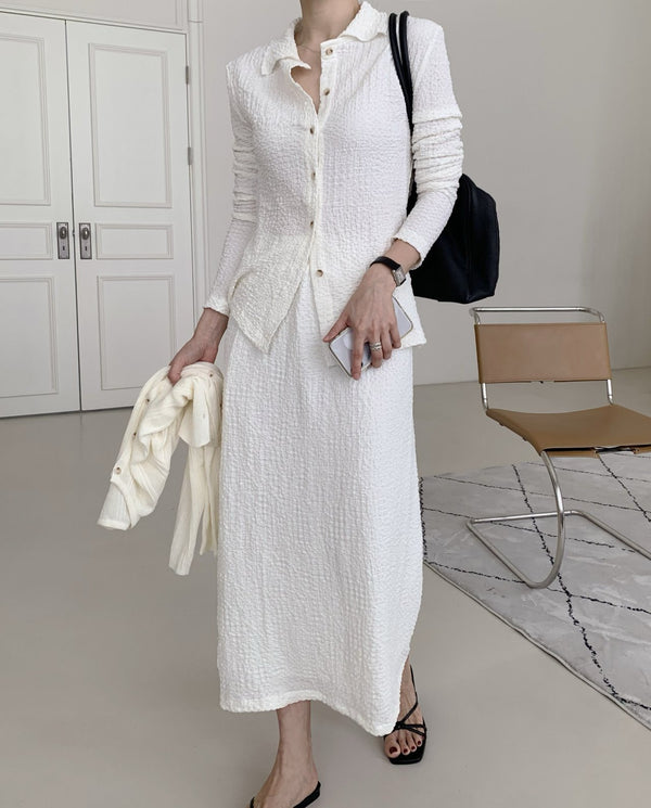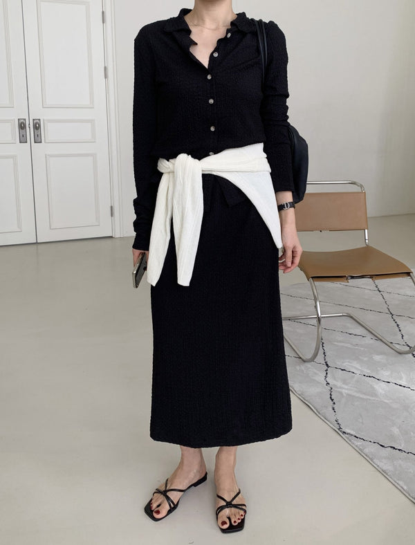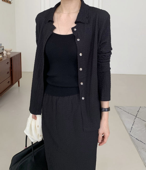 Waffle pattern lightweight material cardigan and long skirt set