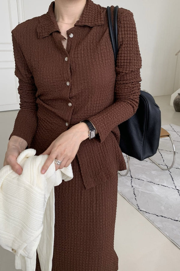 Fall Wrinkle Cadigan & Skirt SET