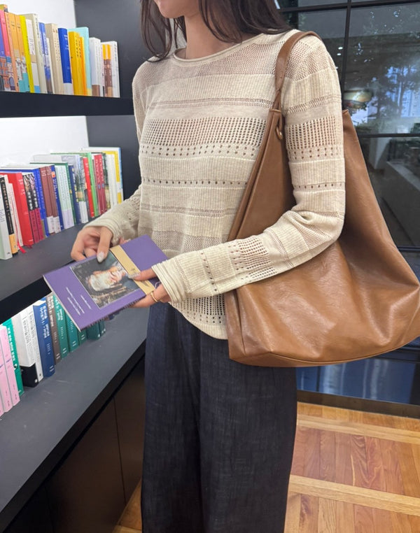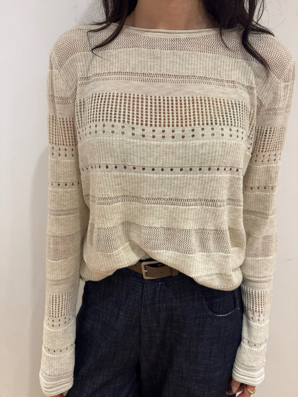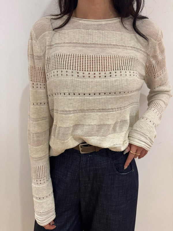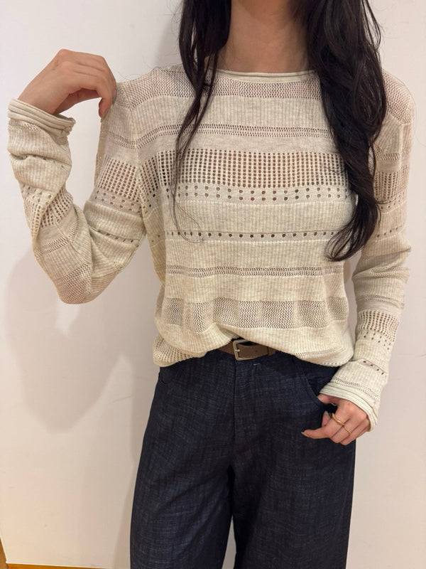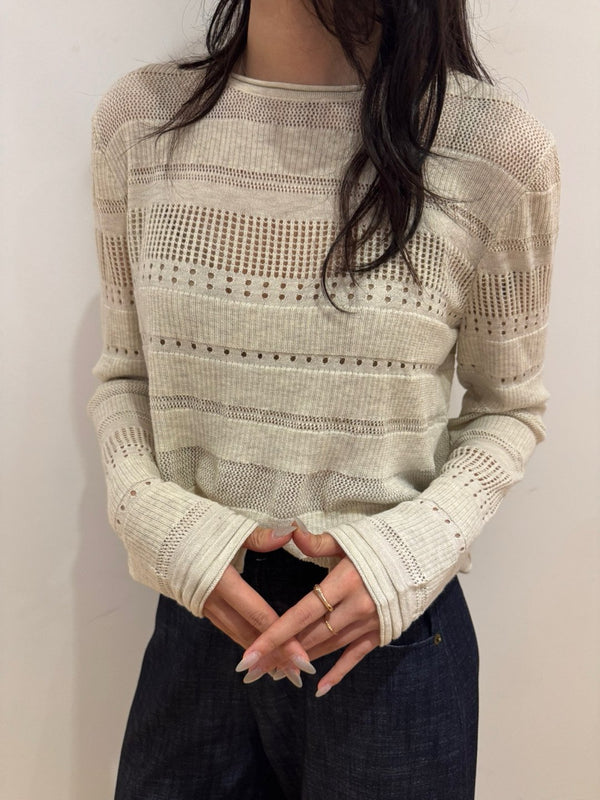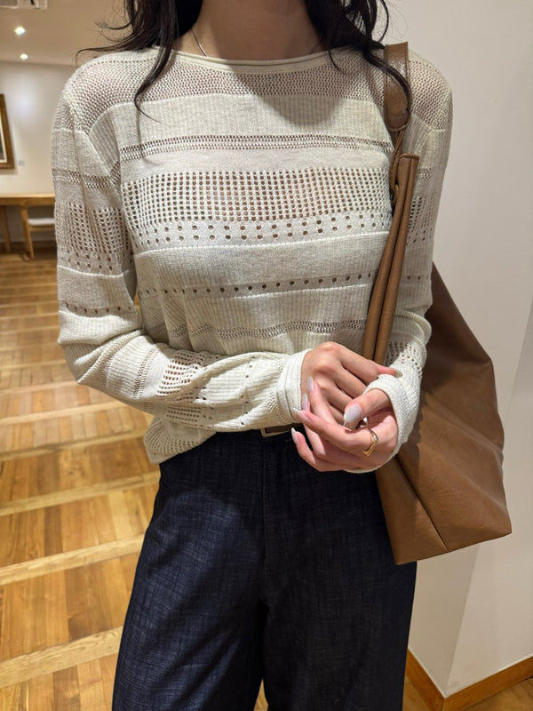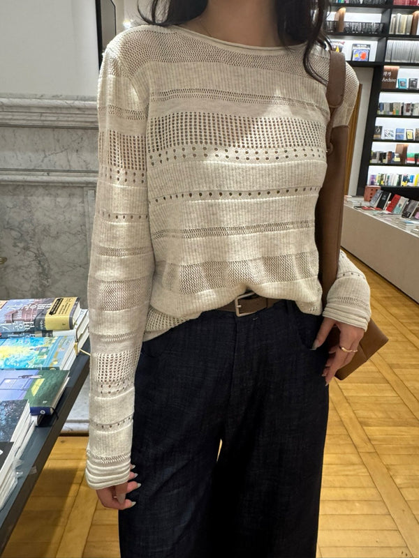 - Loose fit High quality pointelle knit with boatneck