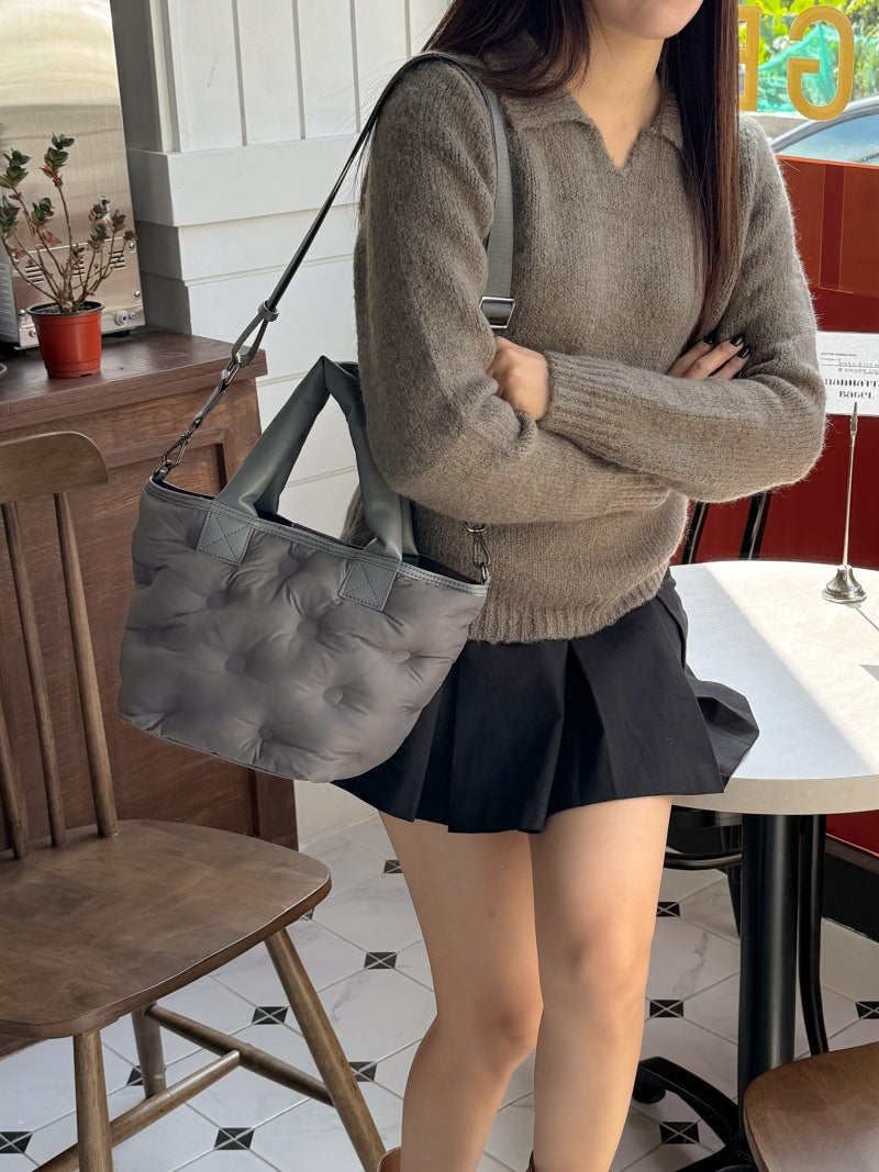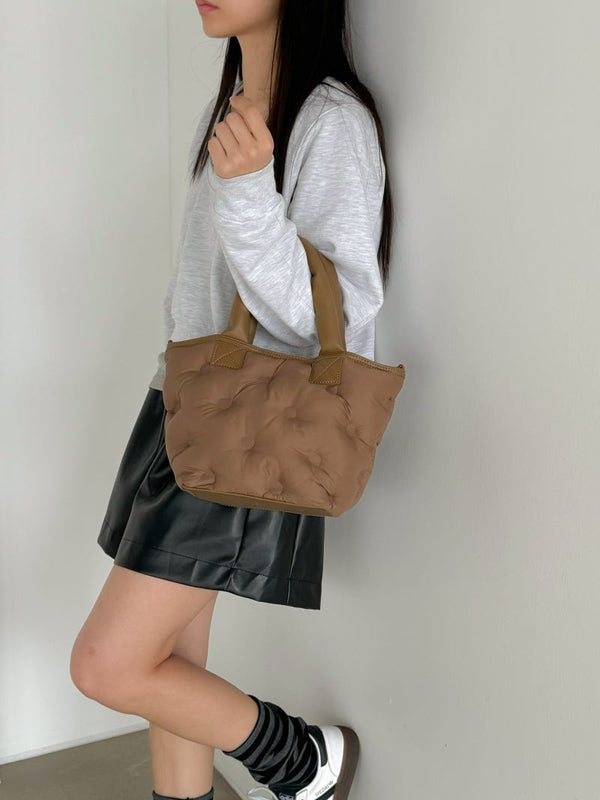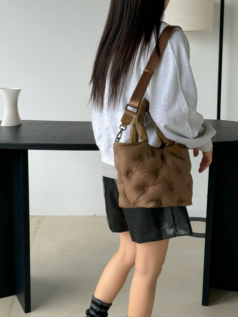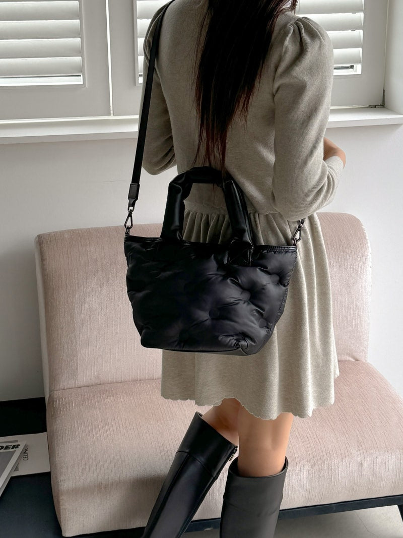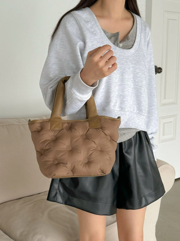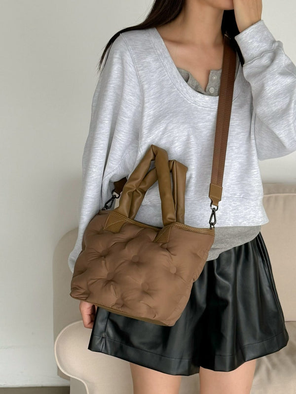 Puffy Leather Handle Tote Bag (cross body)