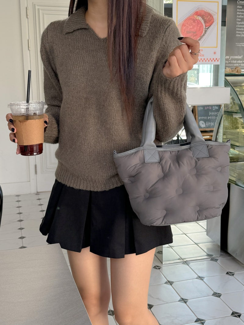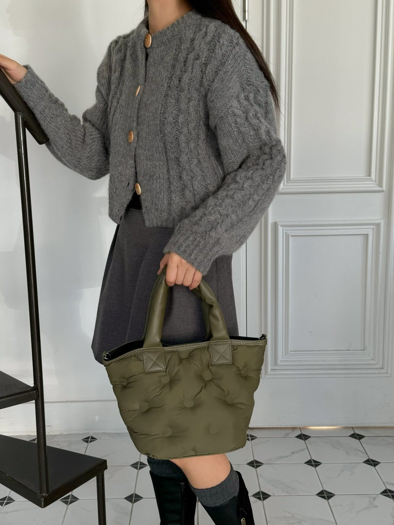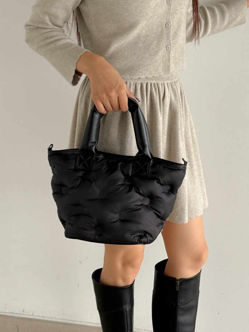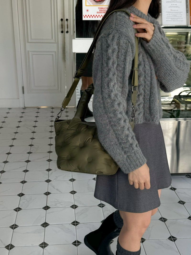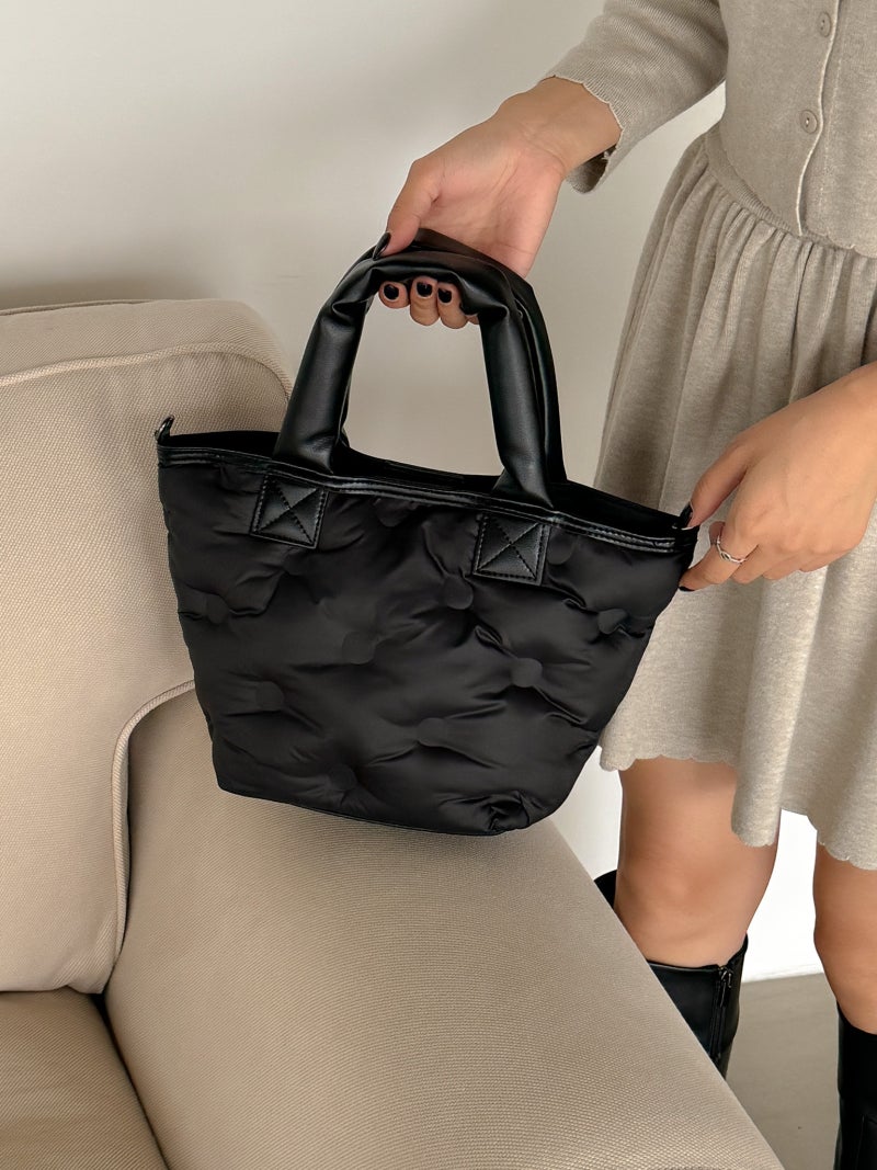Puffy Leather Handle Tote Bag (cross body)