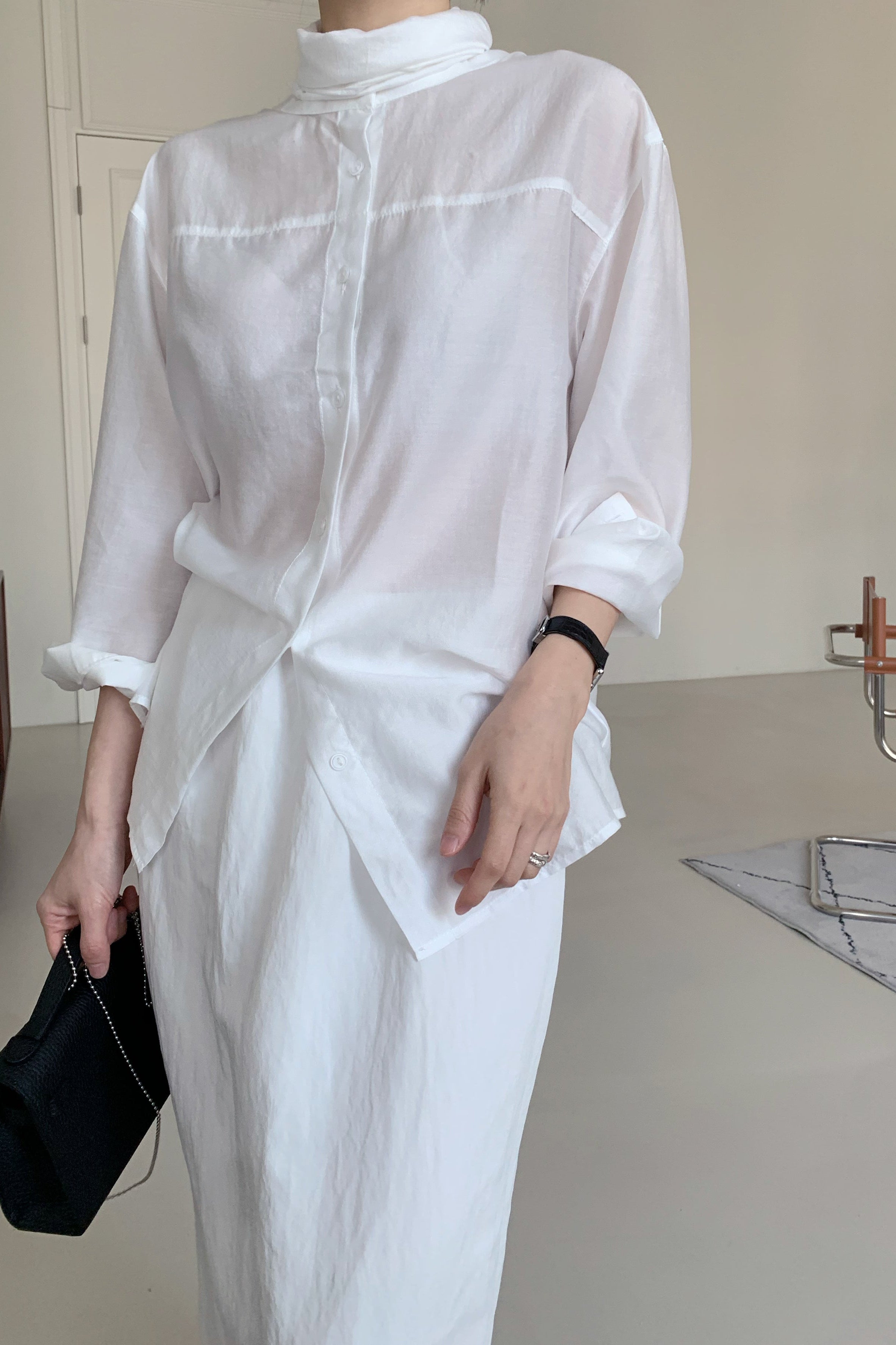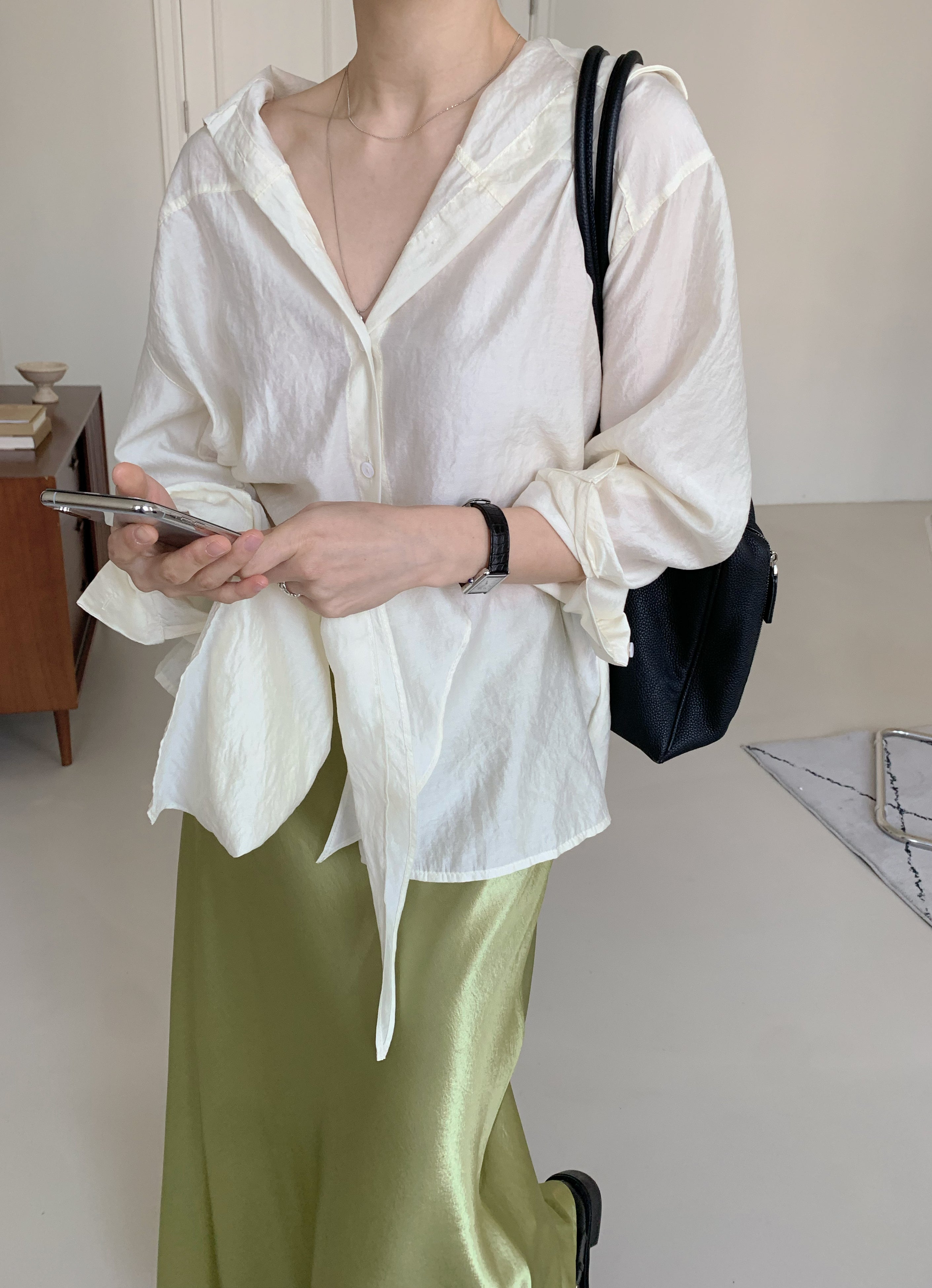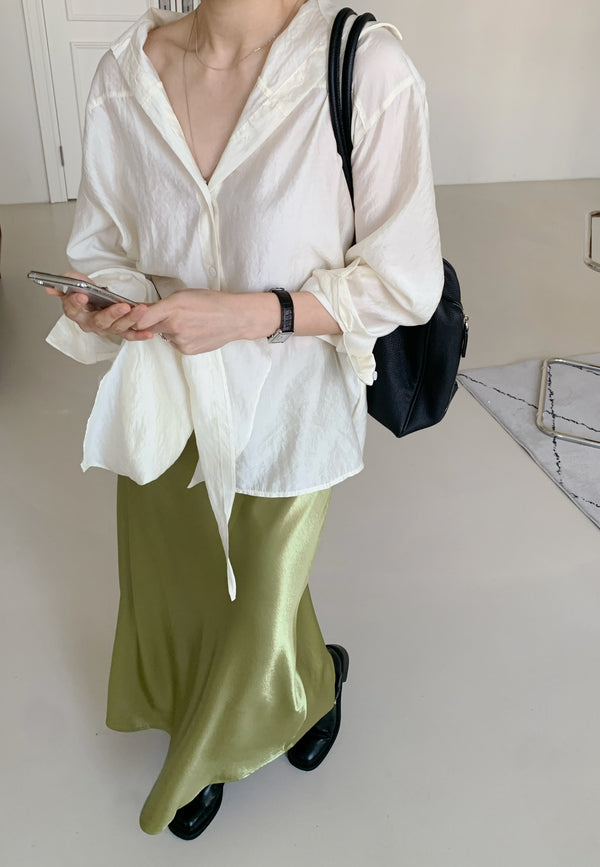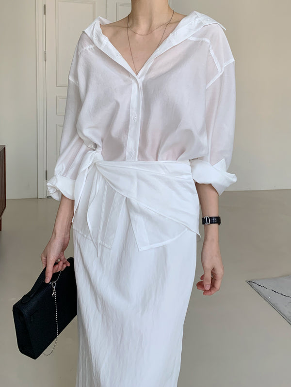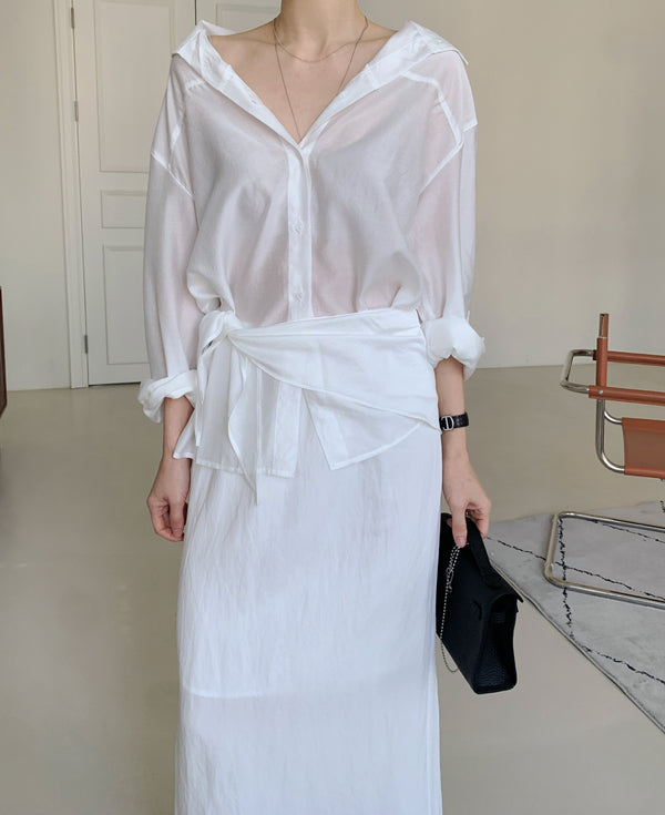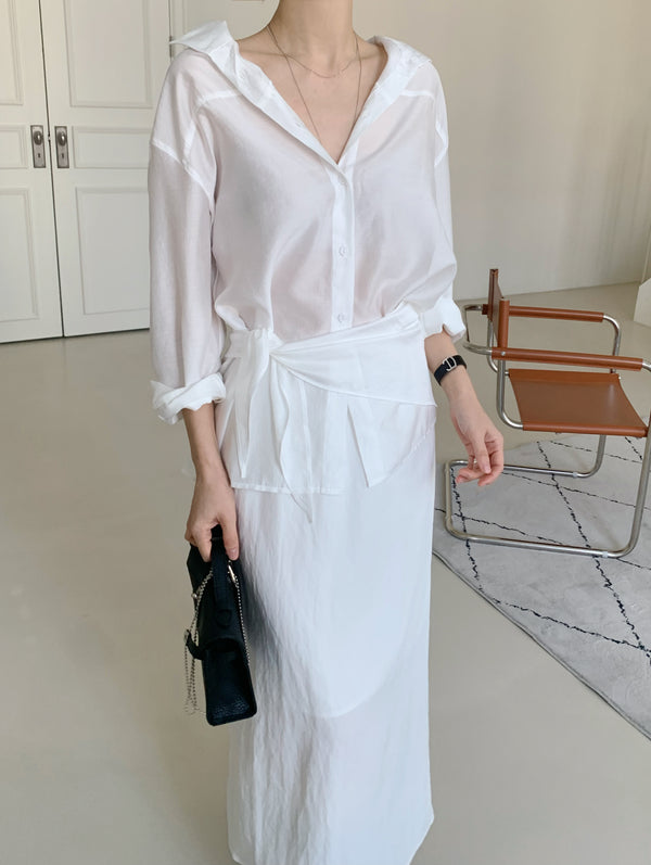 Tencel Sheer Blouse with Scarf