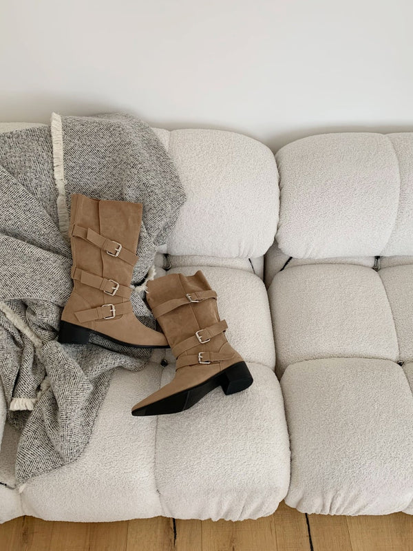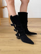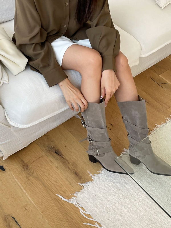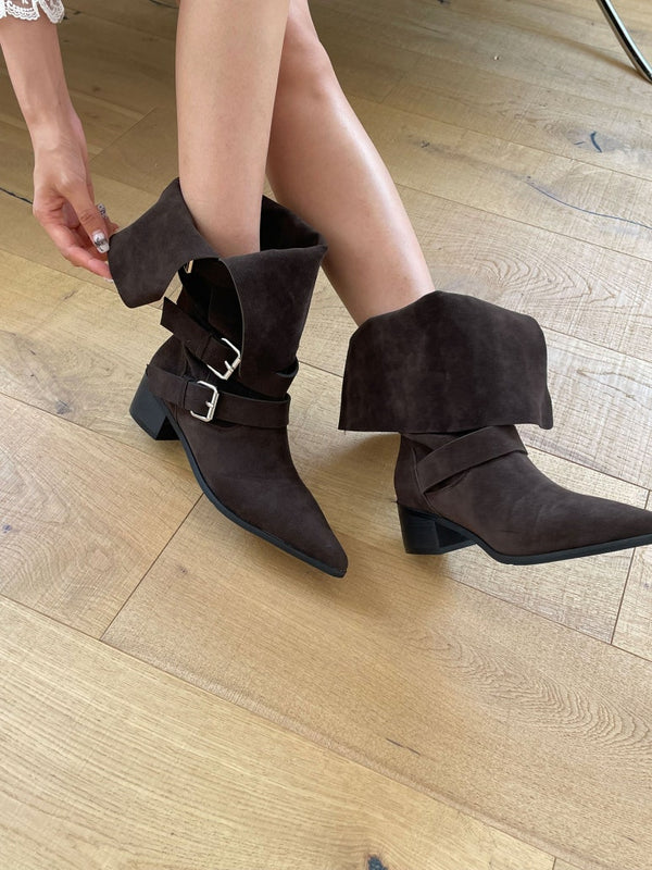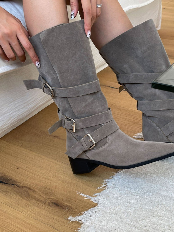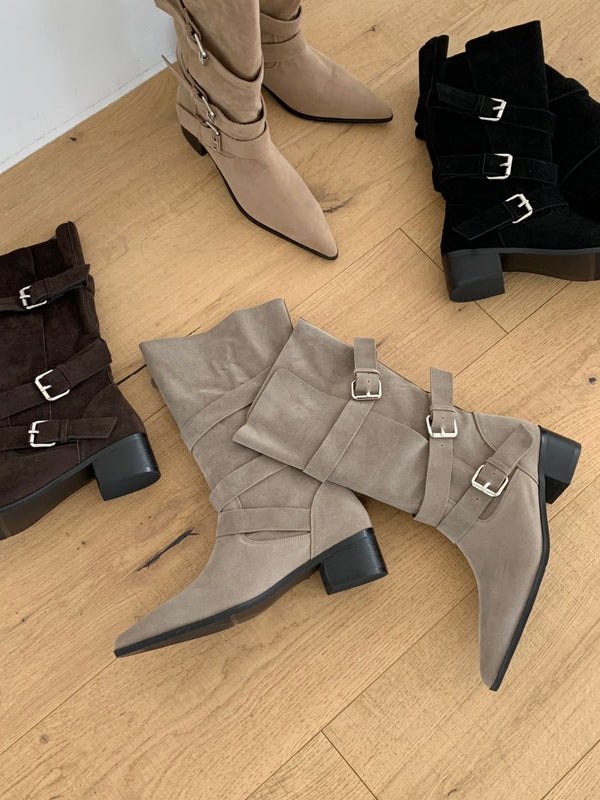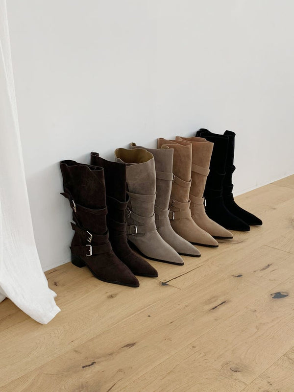 Real suede boots with belted in 4 colors, 2.5" heeled